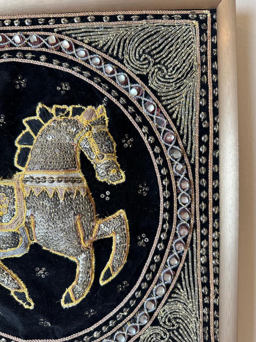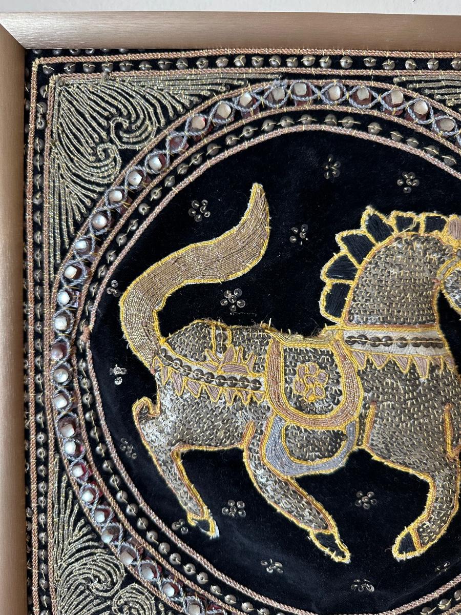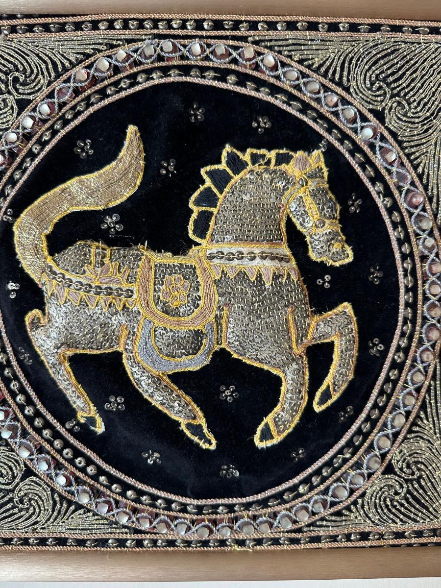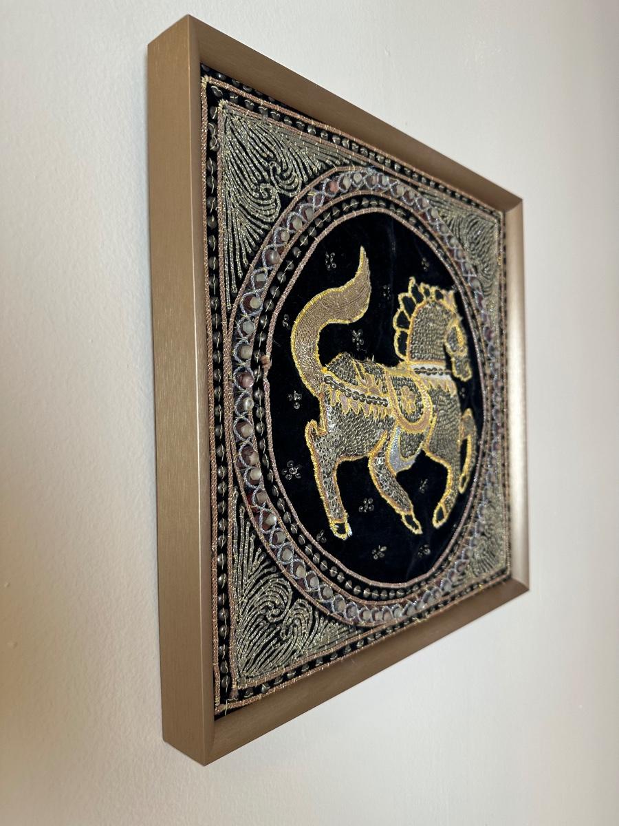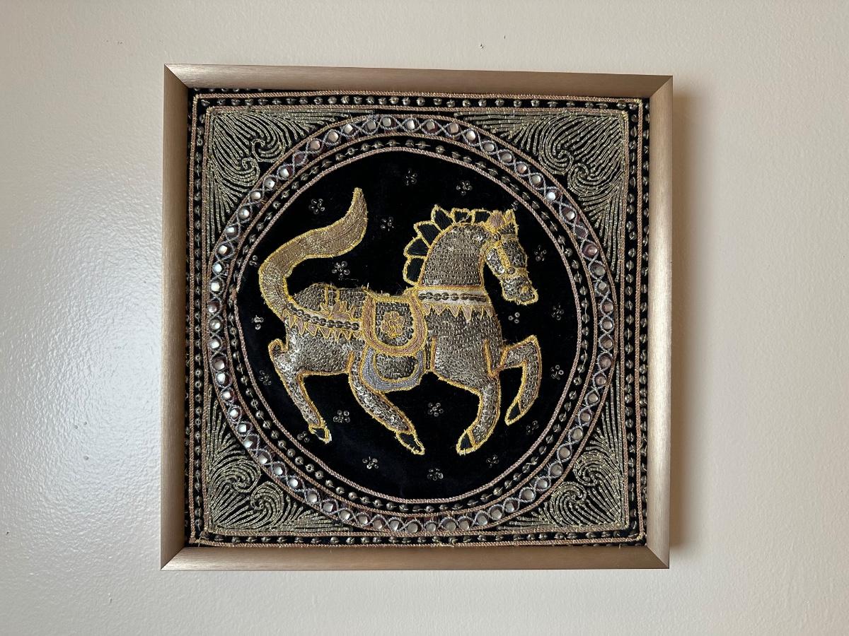 Framed Embroidered Tapestry Kalaga Horse (See Details)