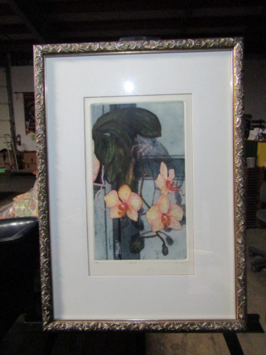 Framed Engraving: 'Orchid' by Jay Pfeil- #2/45- Measures Approx 15" x 21"- Signed by Artist