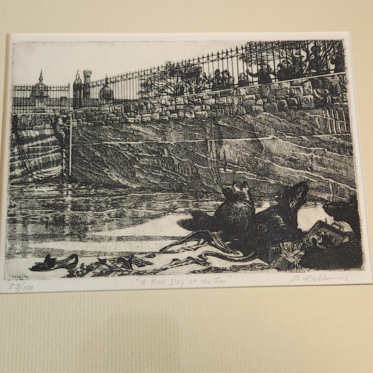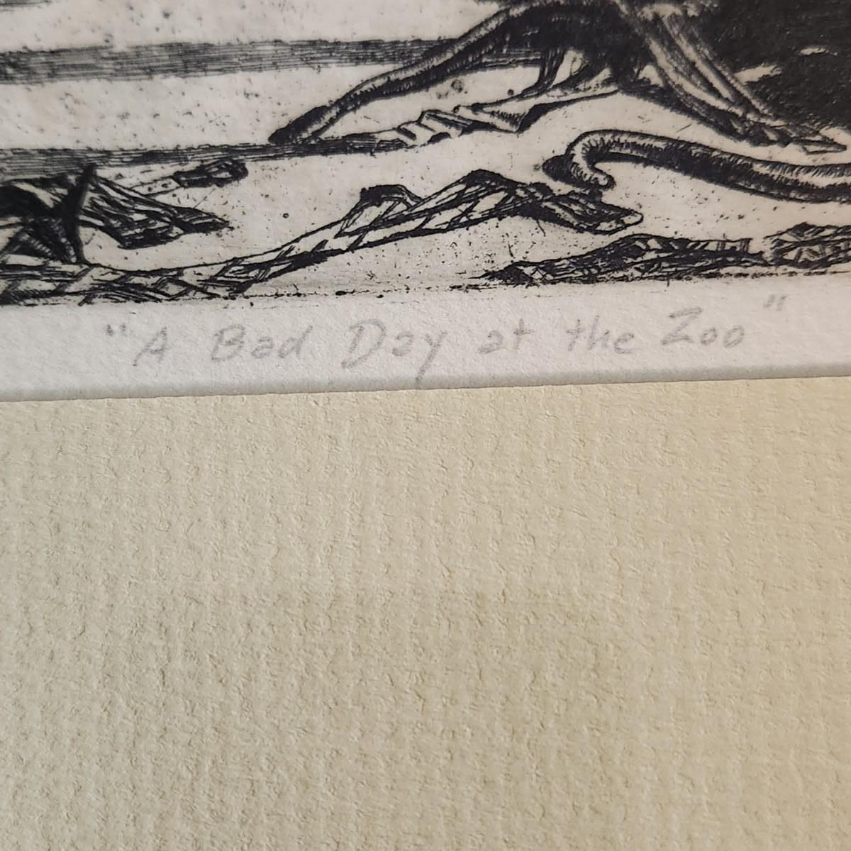 Framed Etching "A Bad Day at the Zoo" Signed David Itchkawich 53/100