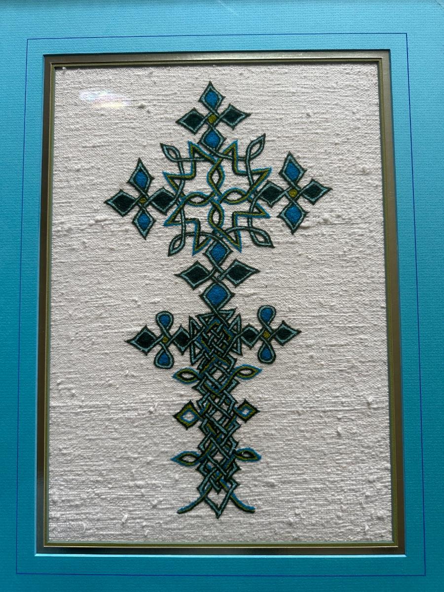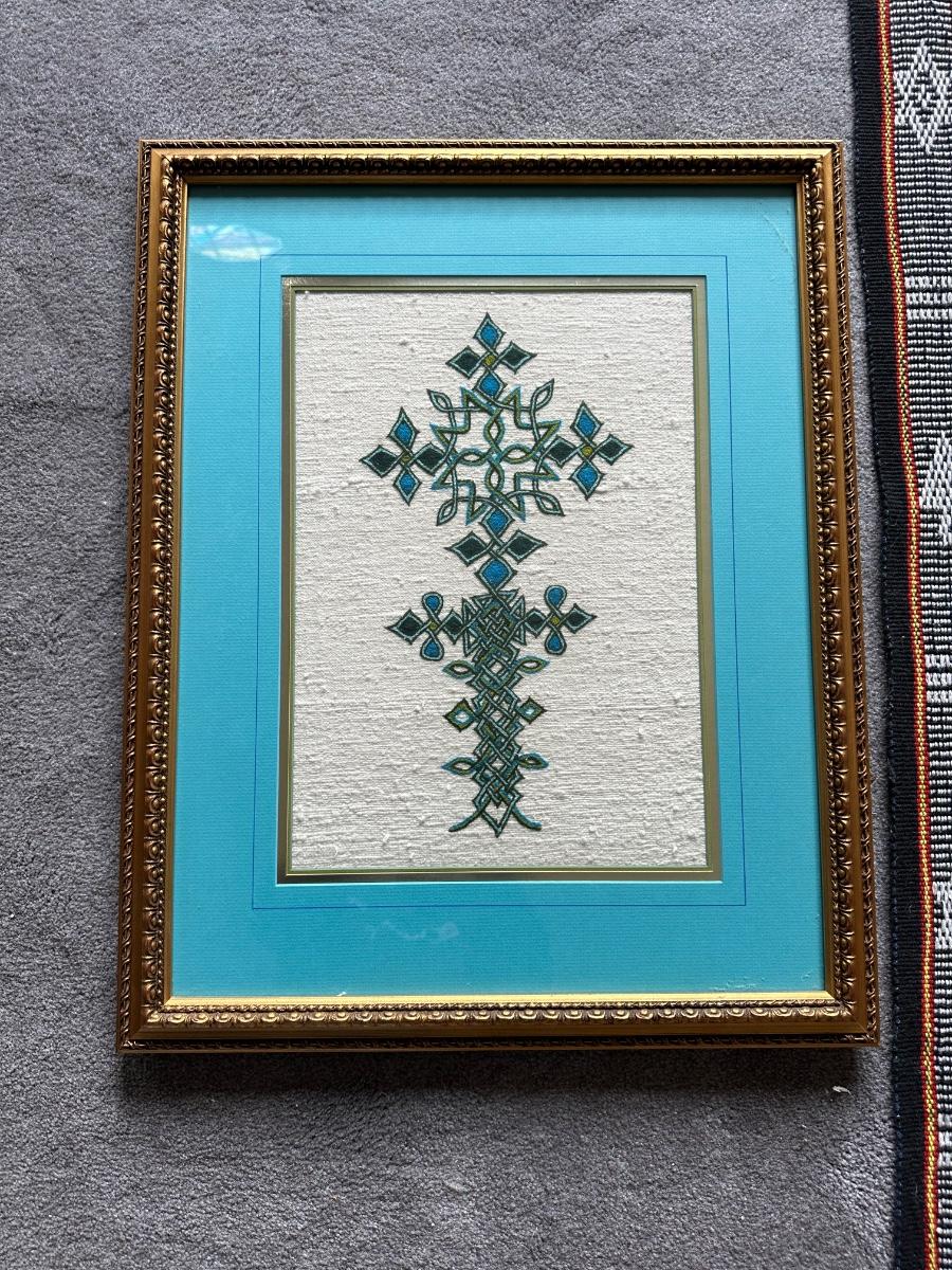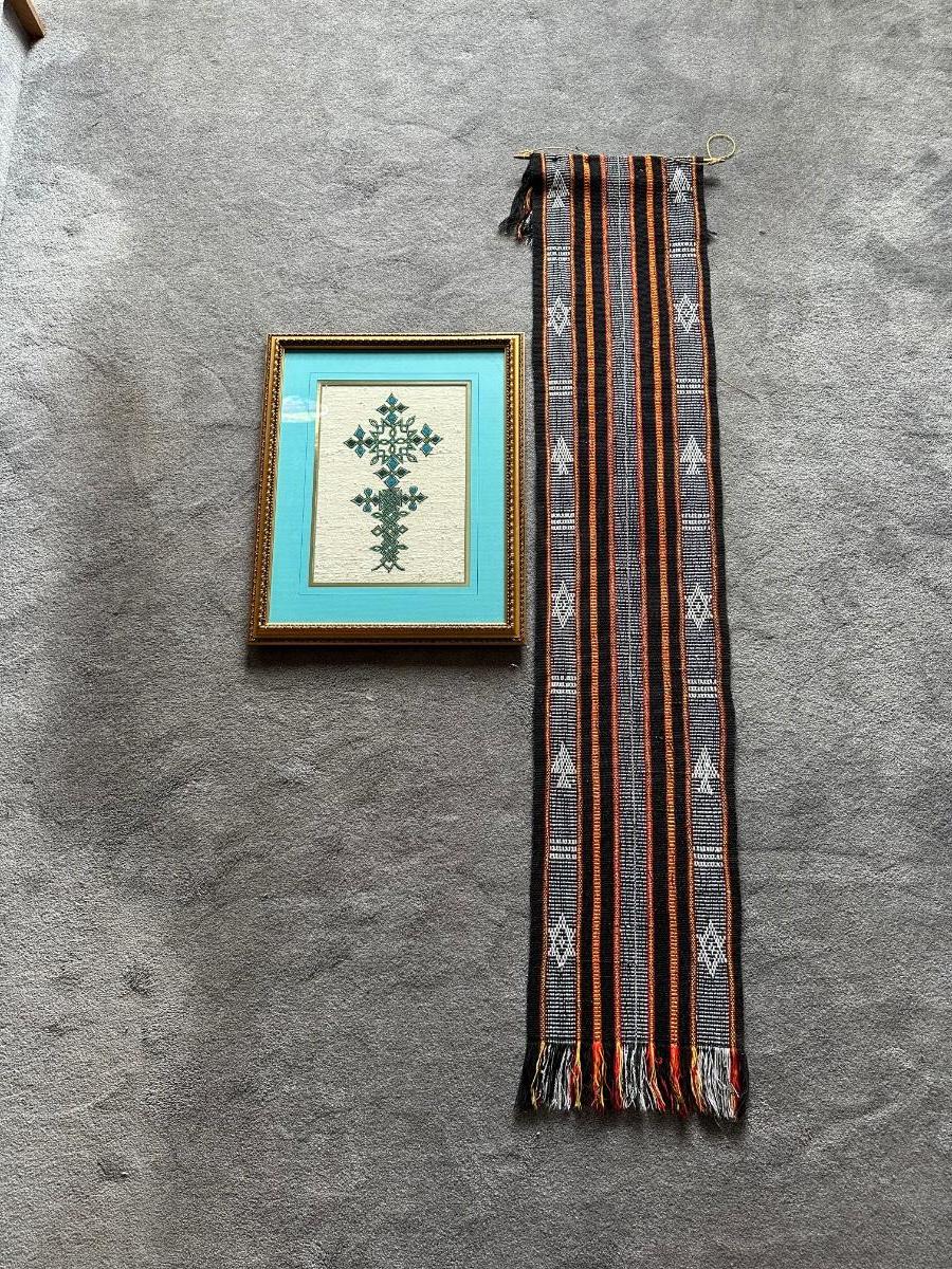 FRAMED ETHIOPIAN CROSS AND A HAND WOVEN SCARF/RUNNER