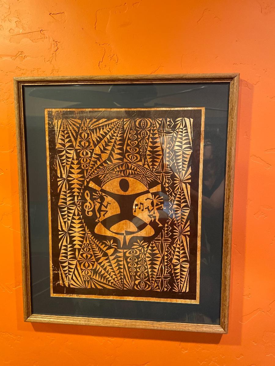 #199 Framed Polynesian? Tribal Musical Barkcloth Print Signed