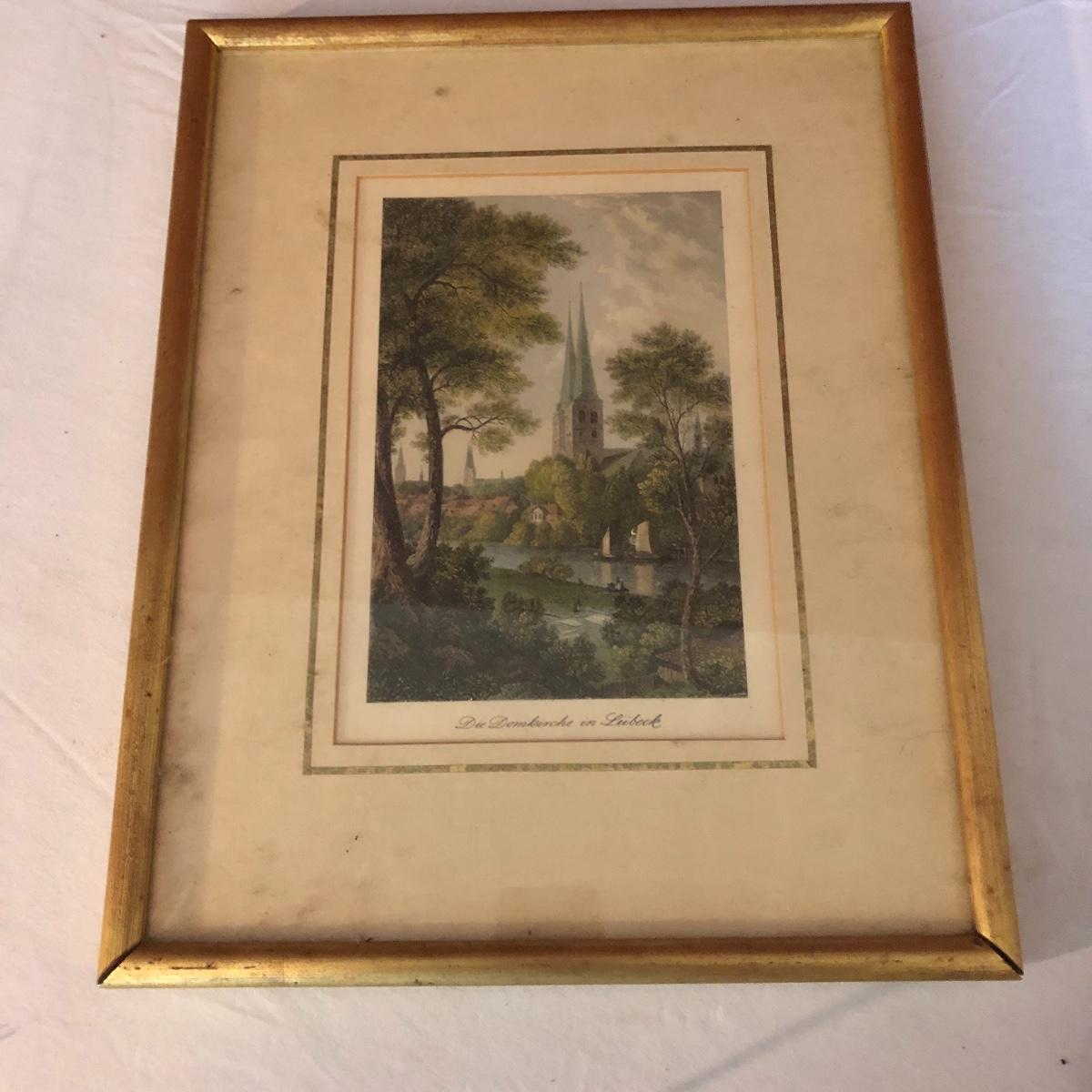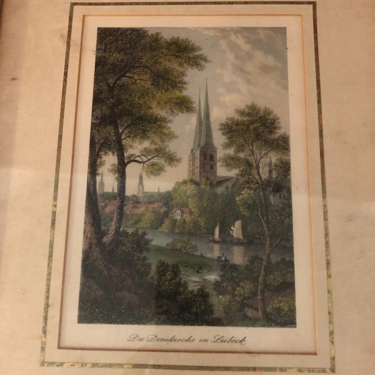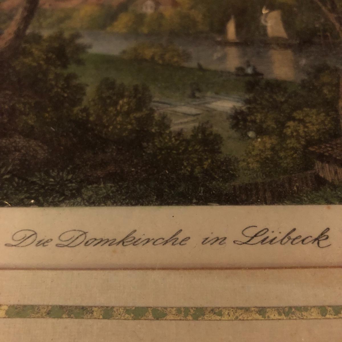 Lot includes one framed and matted print of Stratford upon Avon Church and one framed and matted print of the Cathedral in Lübeck. Largest frame measures 12” x 15”. Smaller piece has some stains on matting and lower section of print, see pictures.
