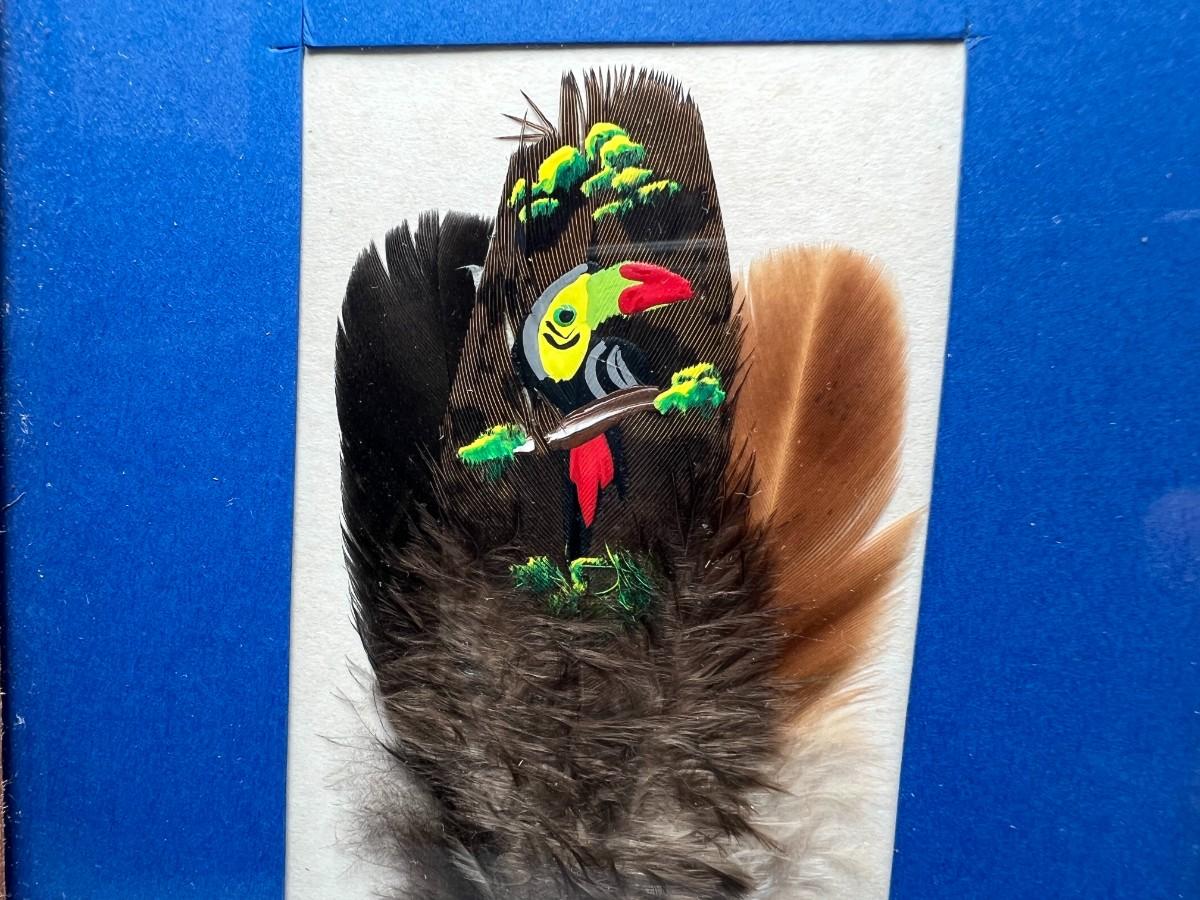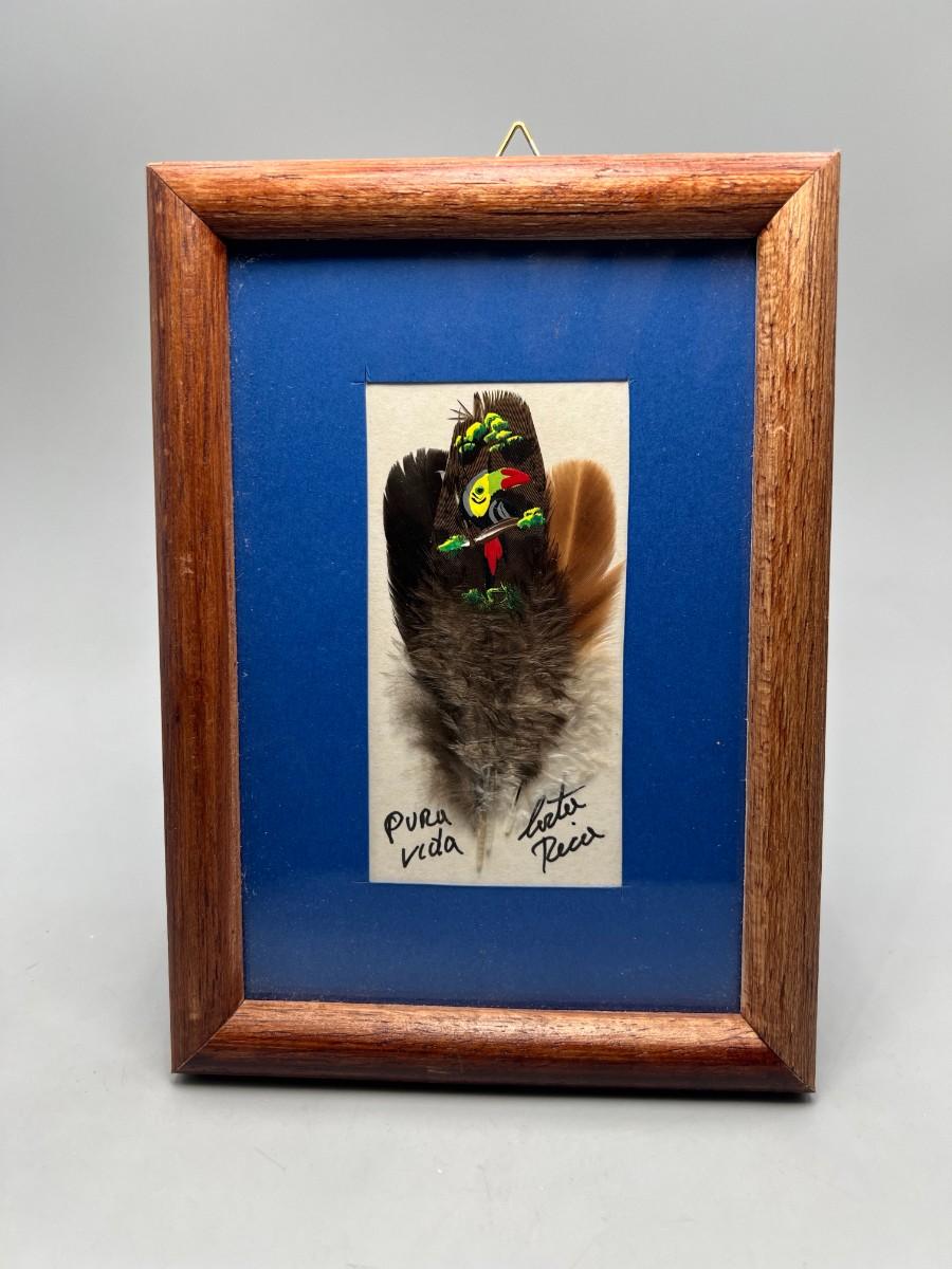 Framed Exotic Costa Rica Pura Vida Souvenir Painted Toucan Feather