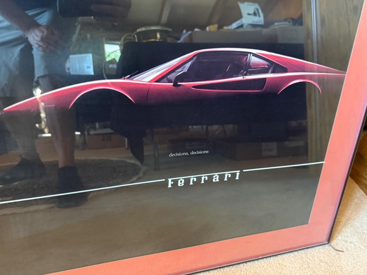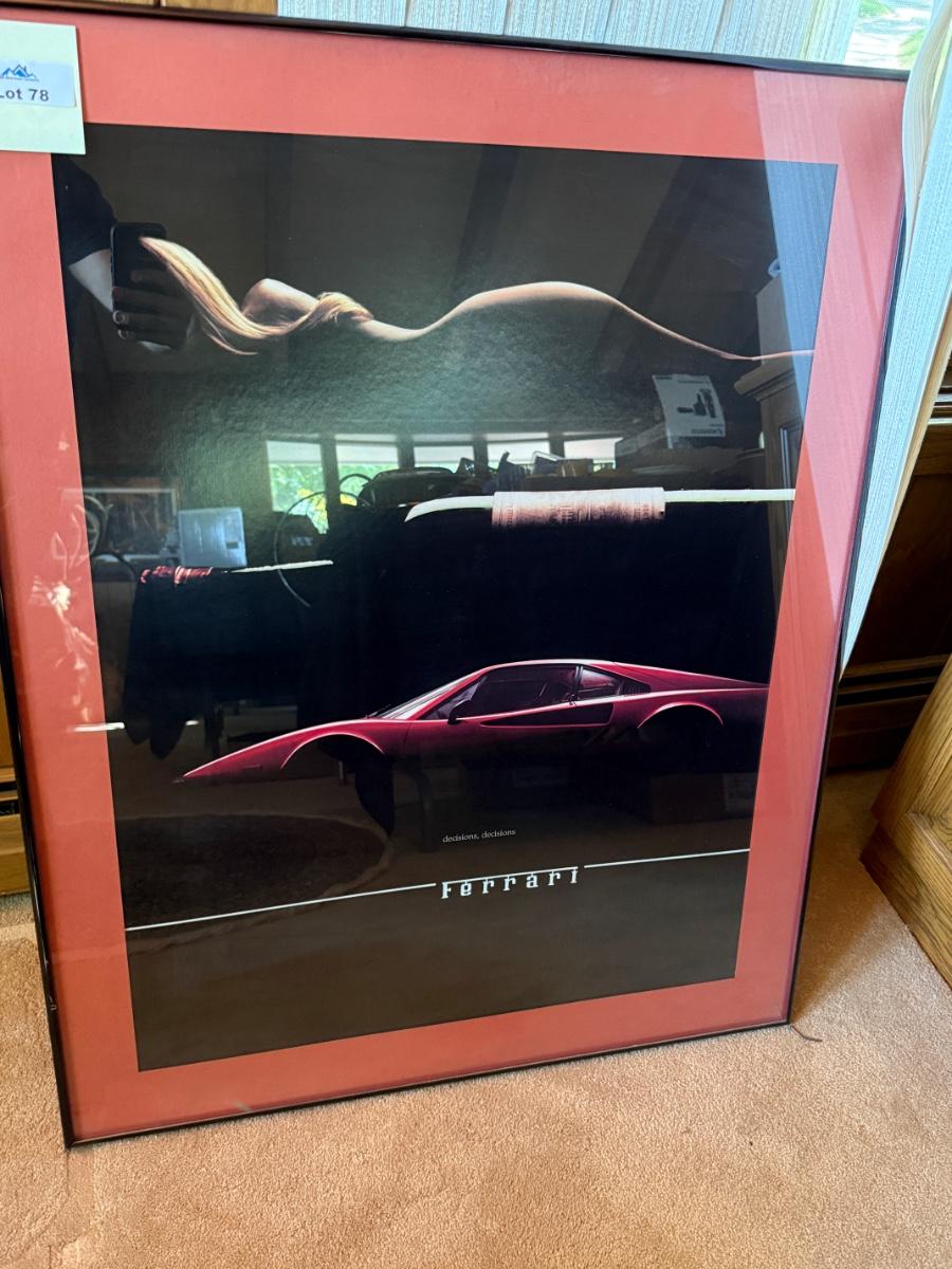 Framed Woman/Wine/Red Ferrari Sports Car Poster as shown