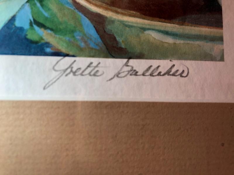 Signed Evette Gallaner and Numbered 1180 out of 1200, Print 22.75” X 18.75” framed. Very tastefully matted and framed. Great addition to every room.