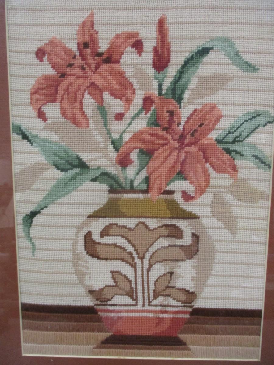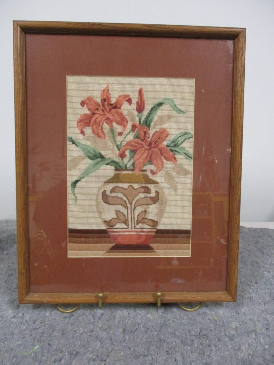 Framed Floral Arrangement Needlework Approx 21"x 17"
