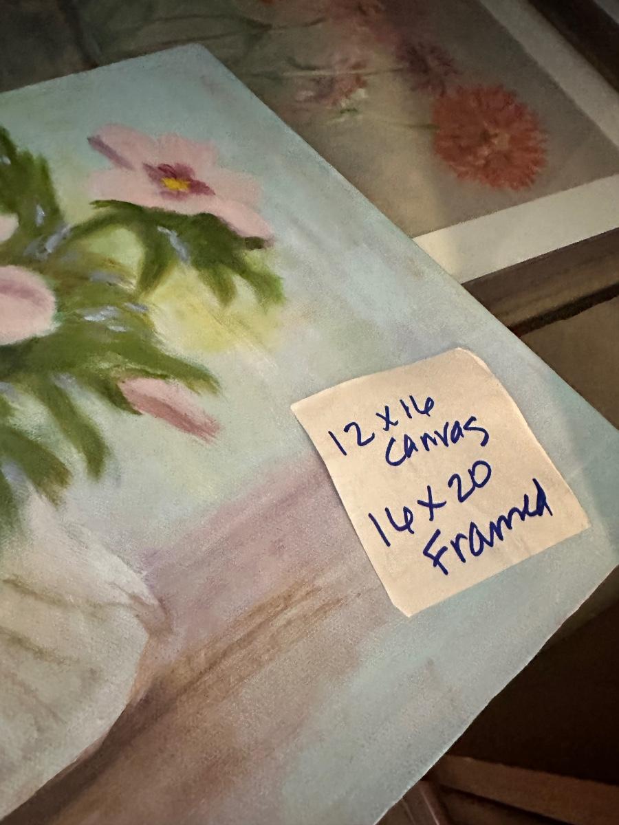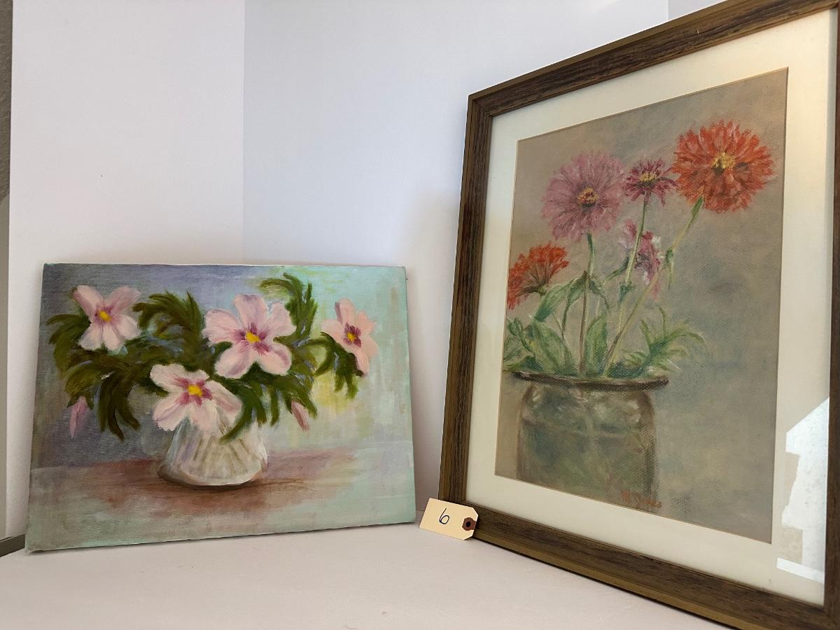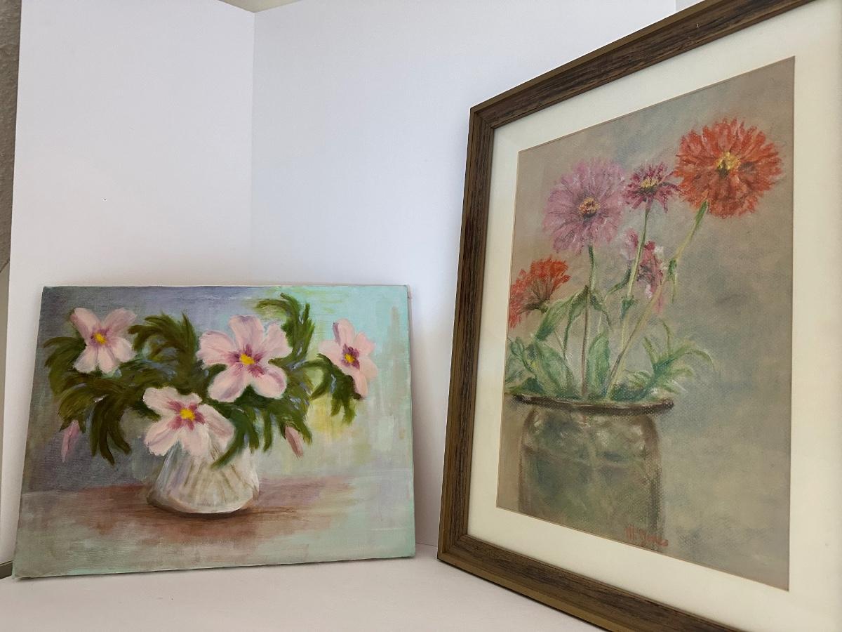 Framed Floral Painting, Floral Painted Canvas As Pictured