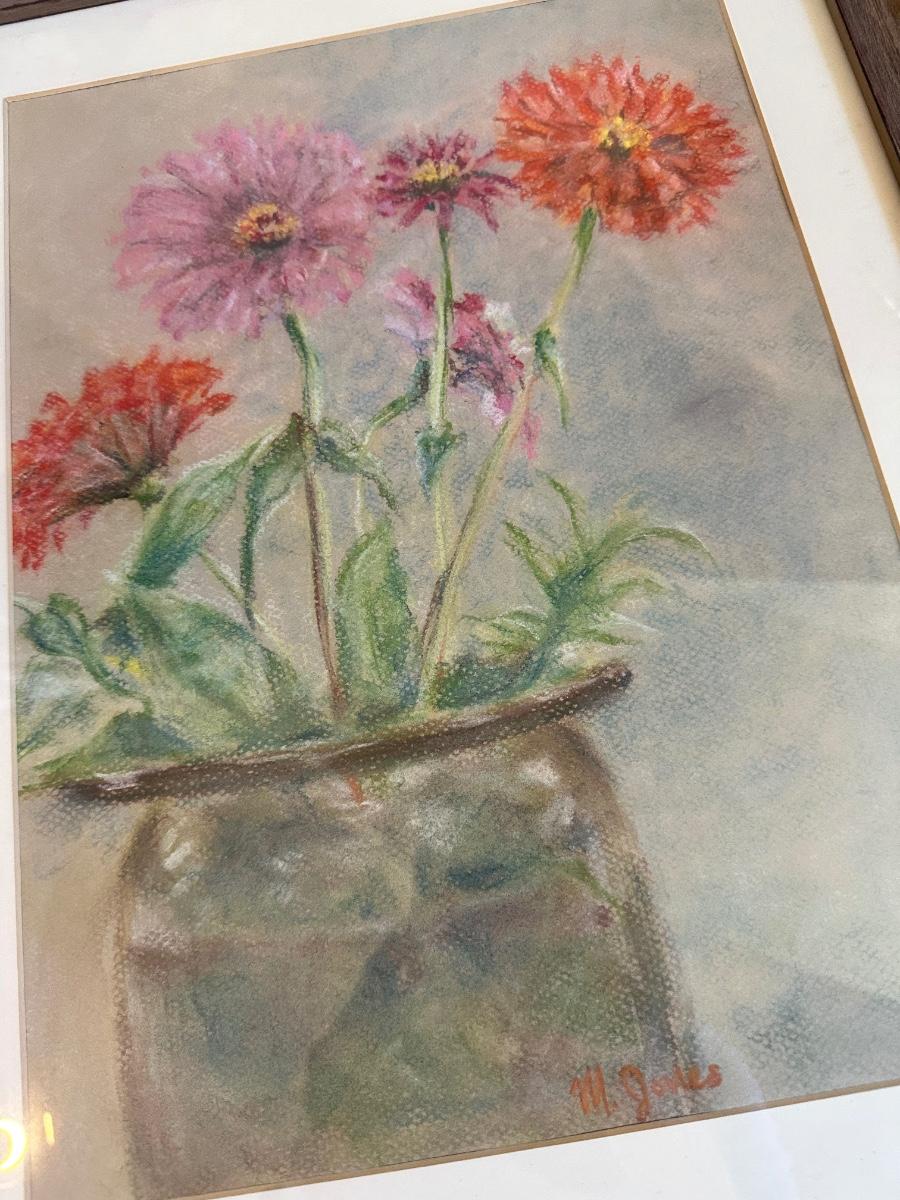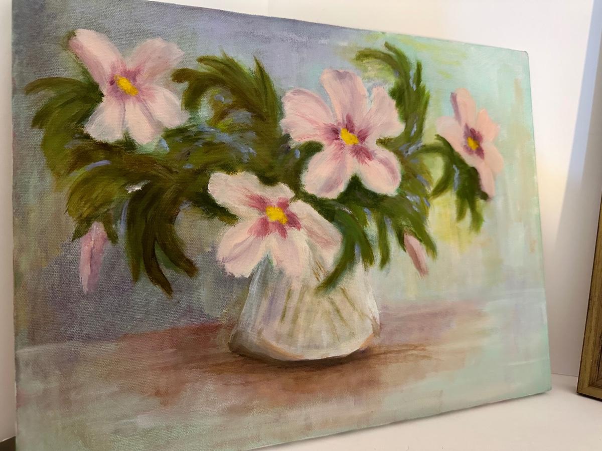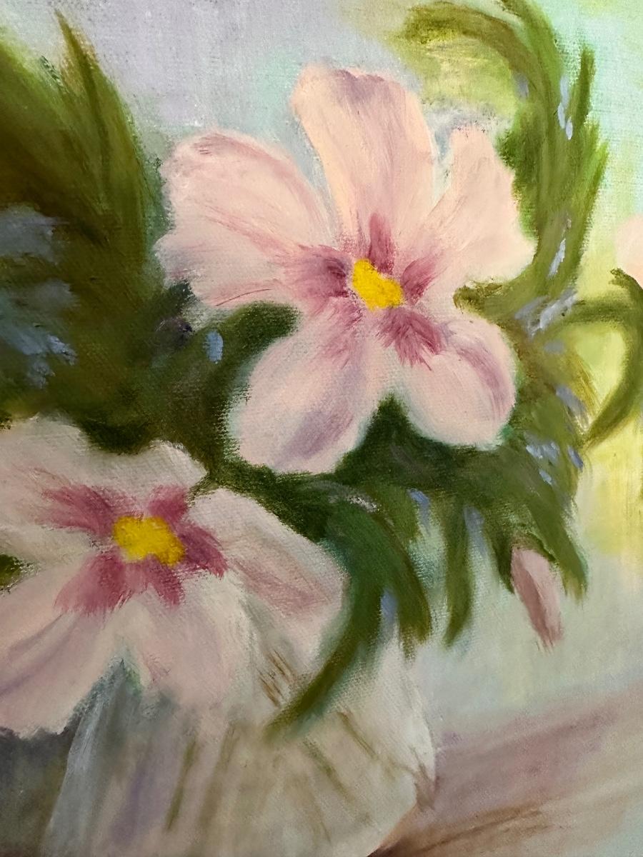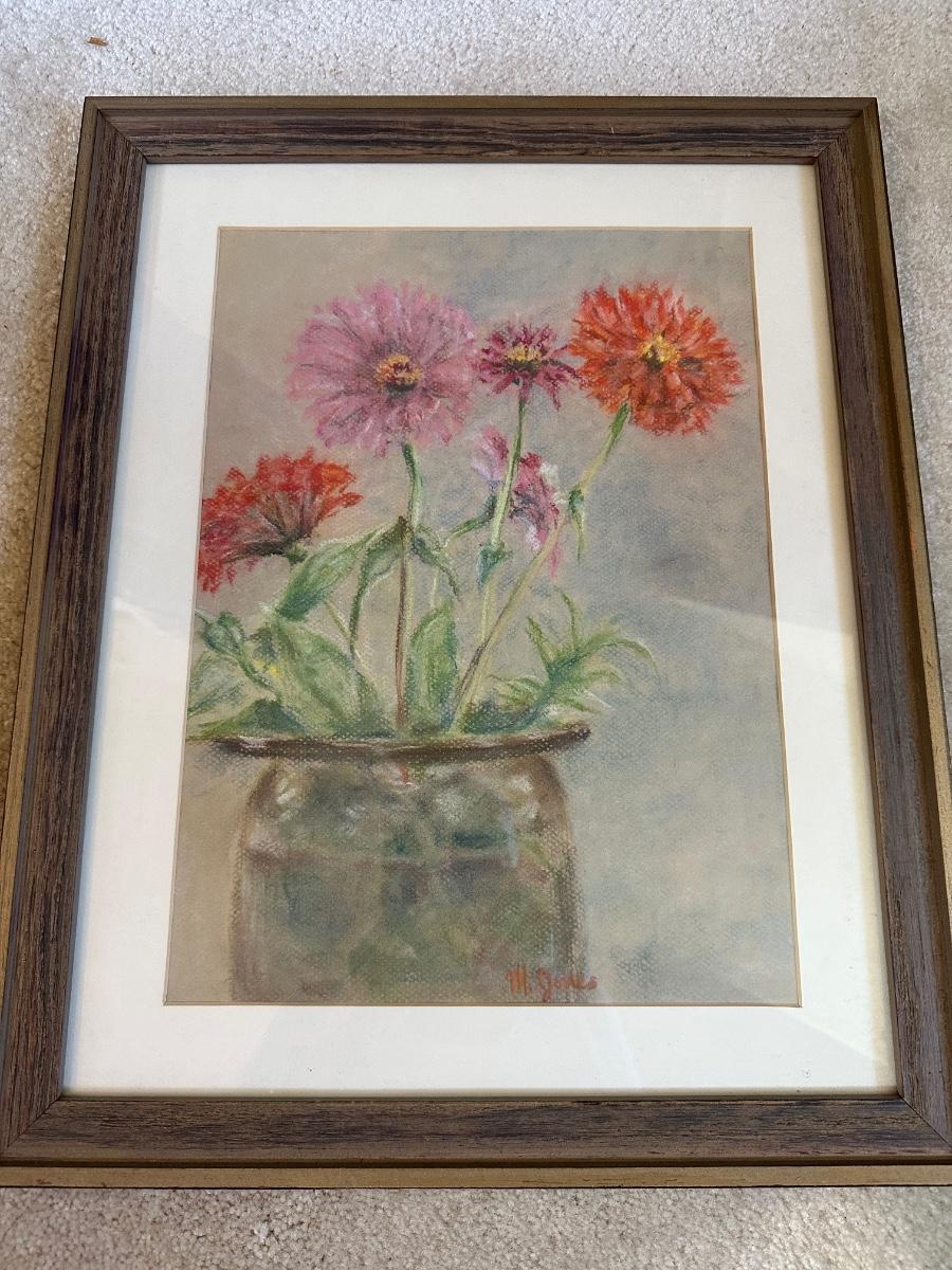 Framed Floral Painting, Floral Painted Canvas As Pictured
