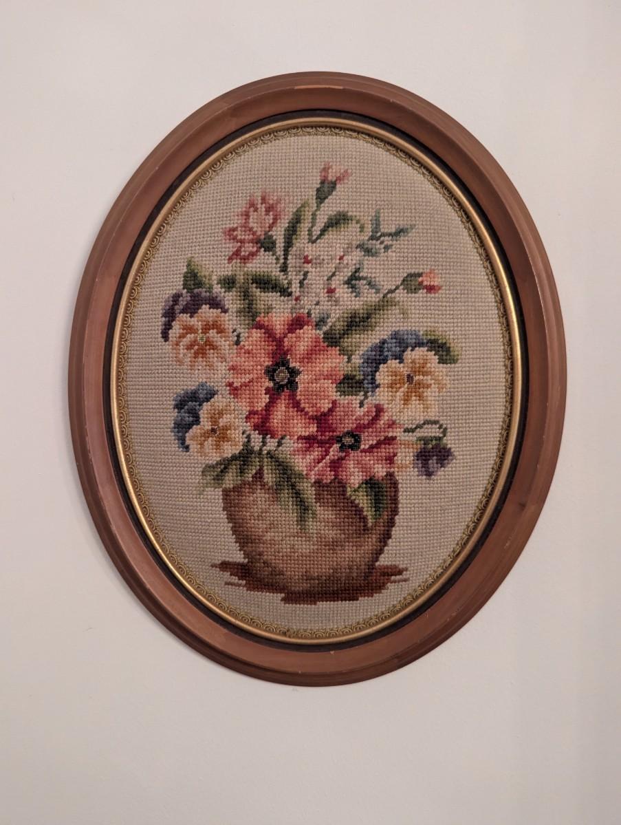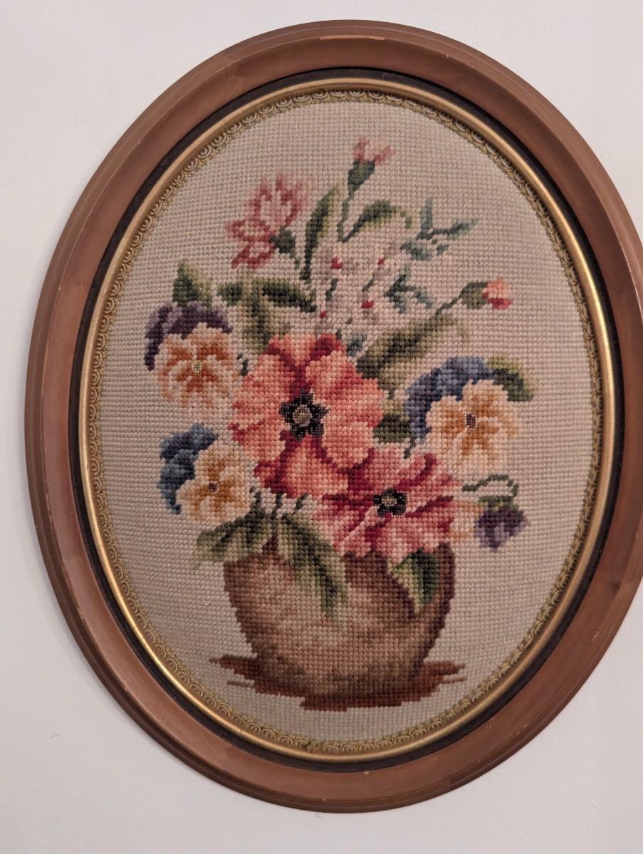 Framed Floral Needlepoint Art