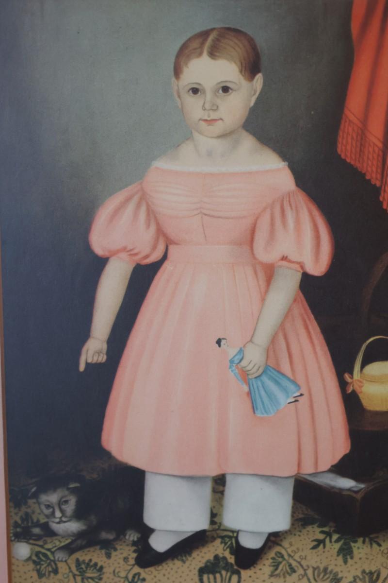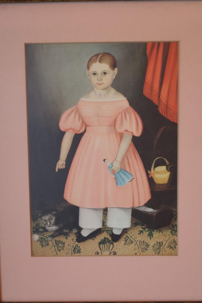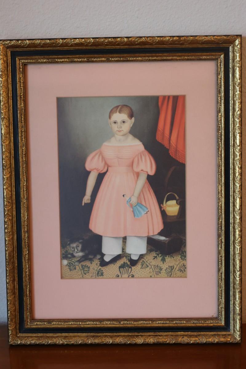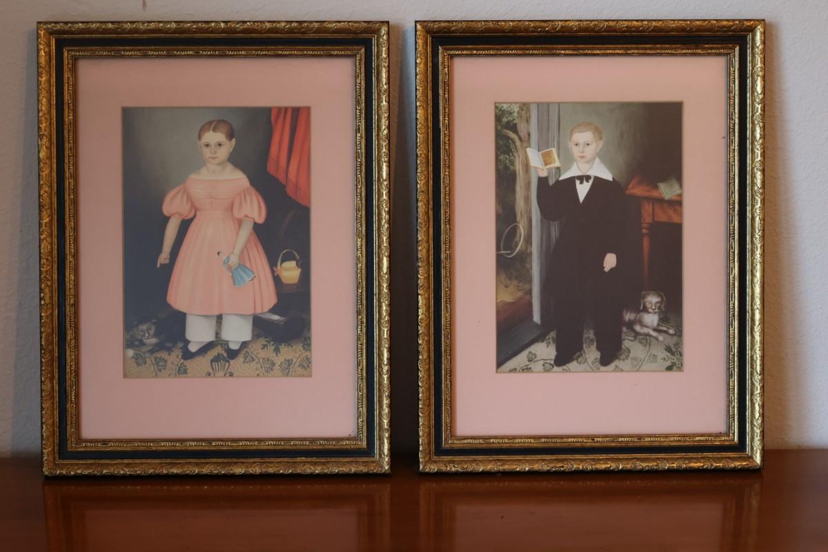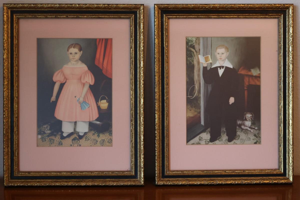 Framed Folk Art Portraits of Colonial Boy & Girl
