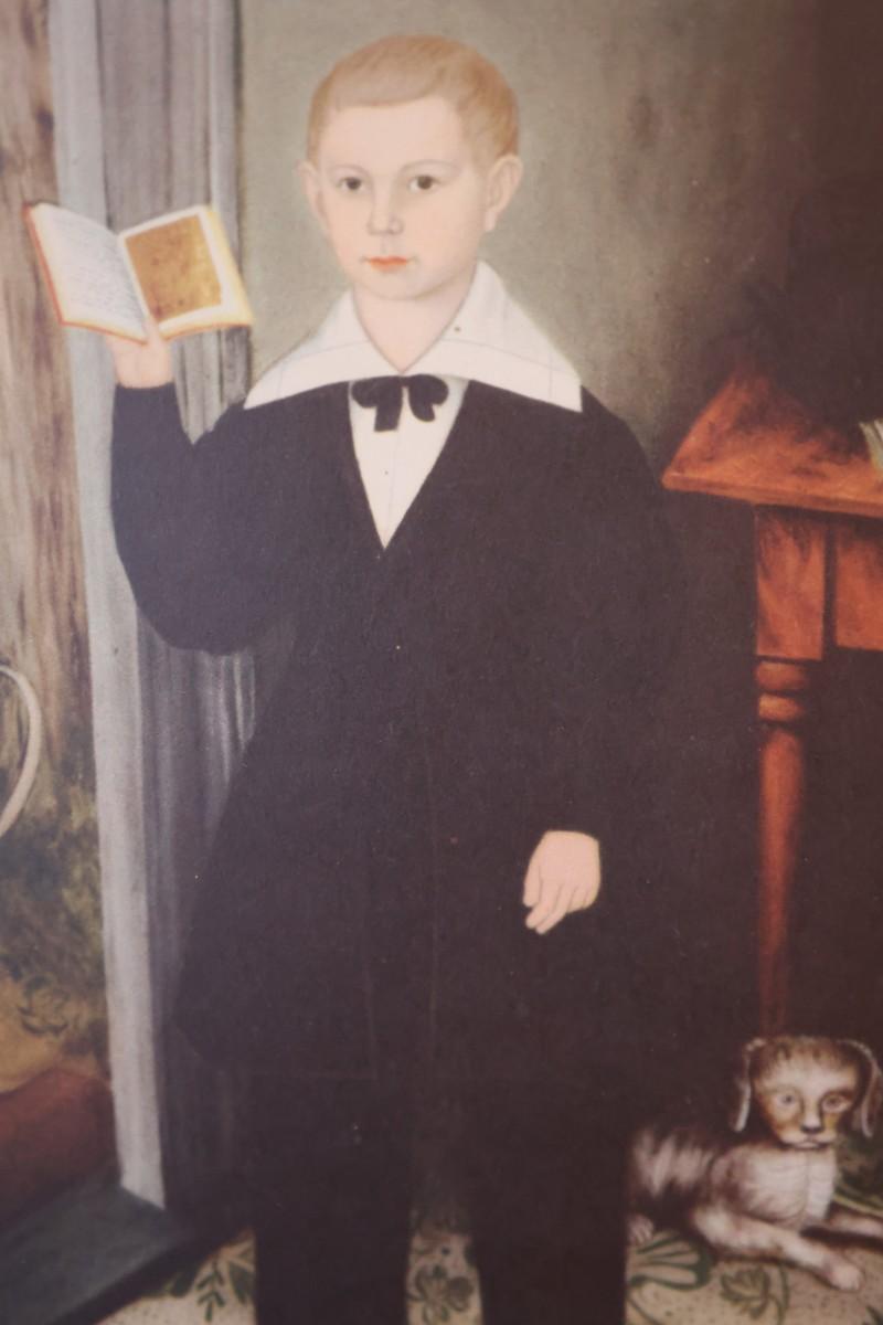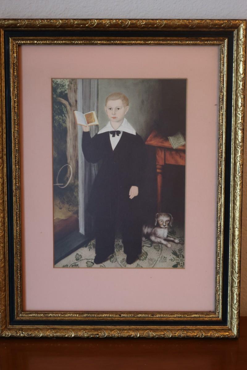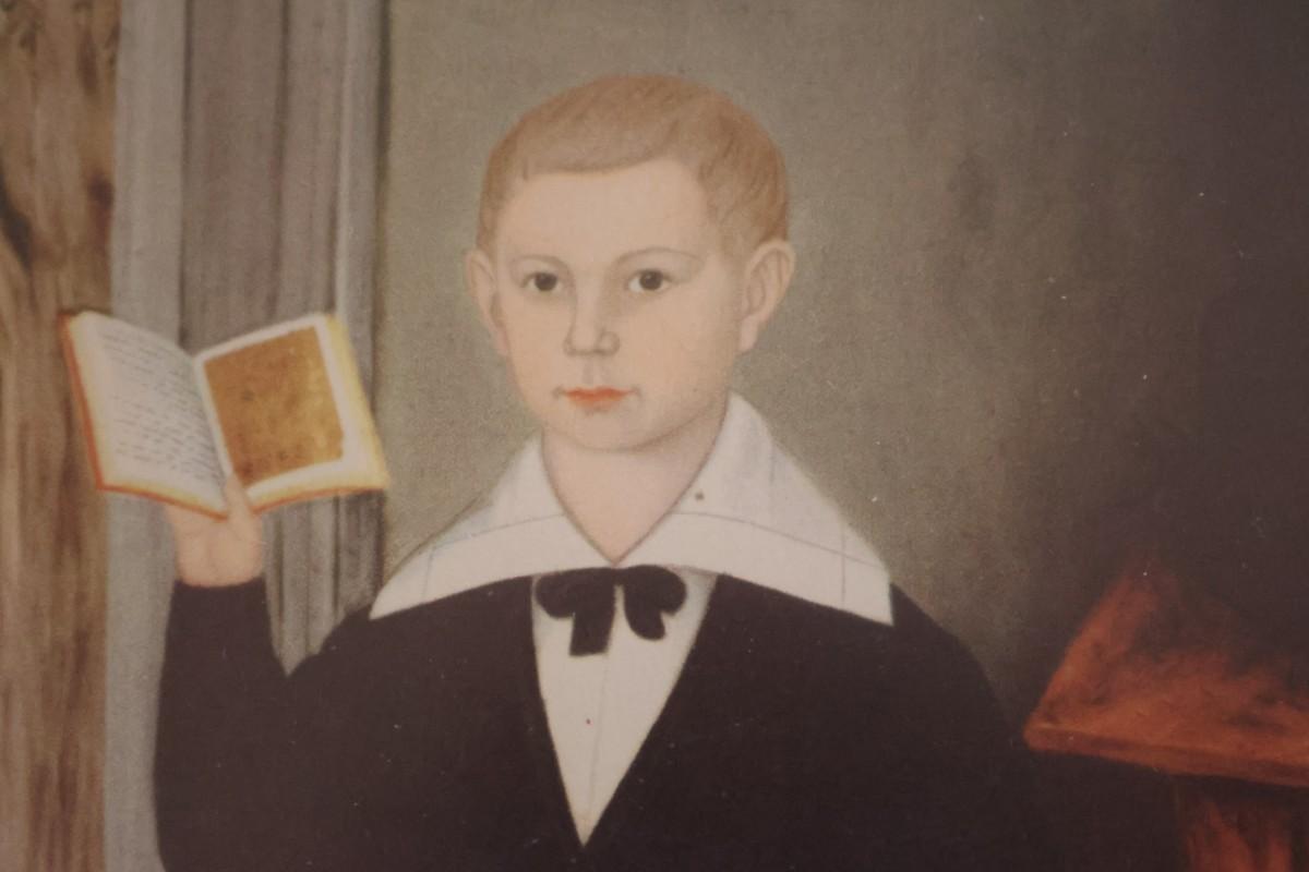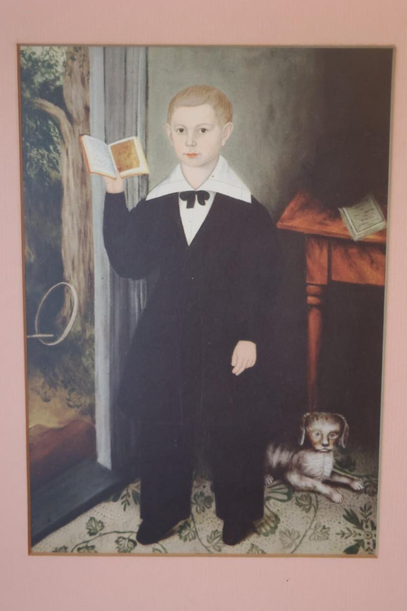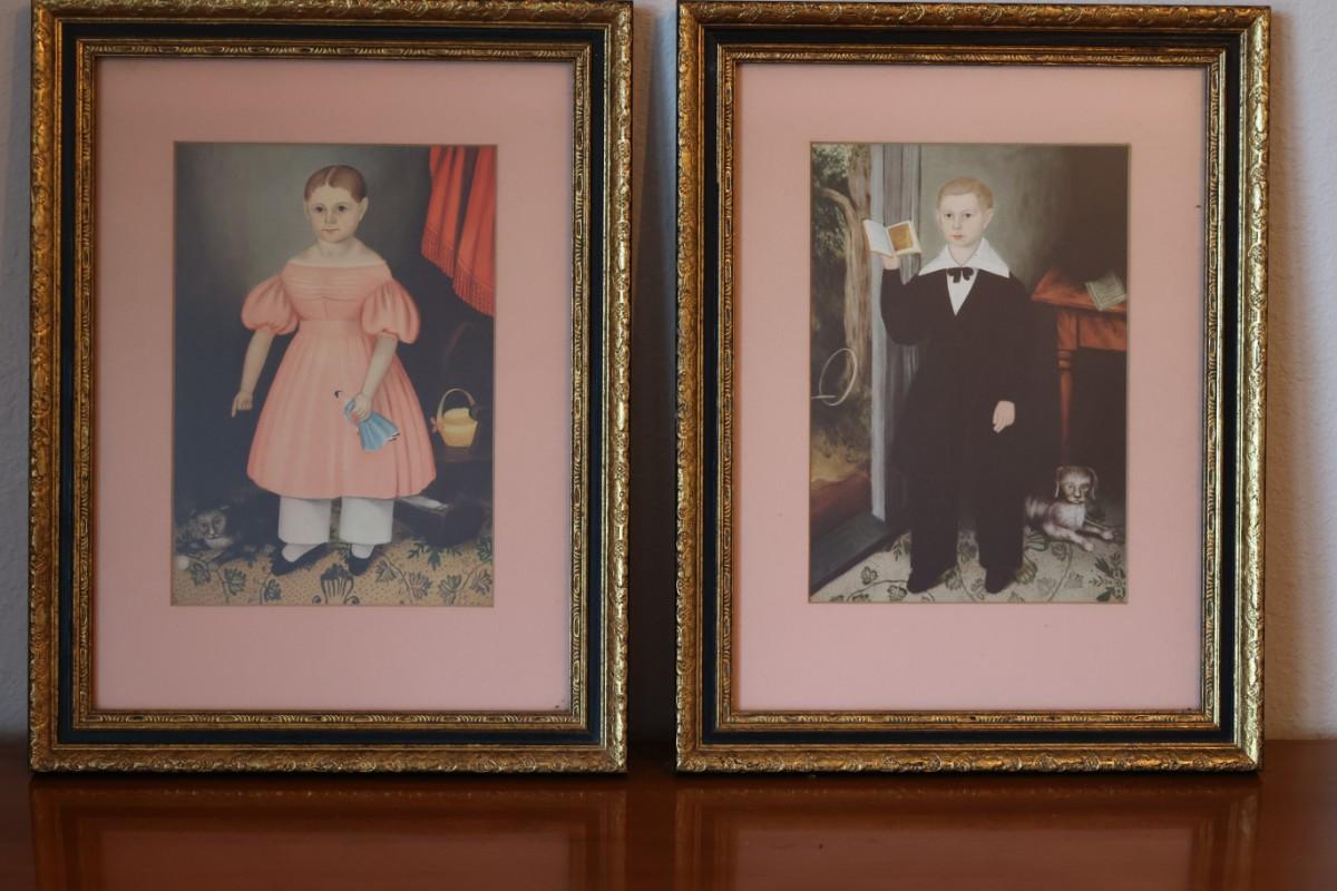 Framed Folk Art Portraits of Colonial Boy & Girl