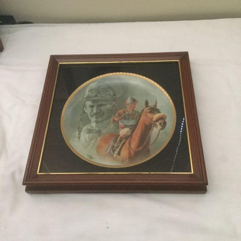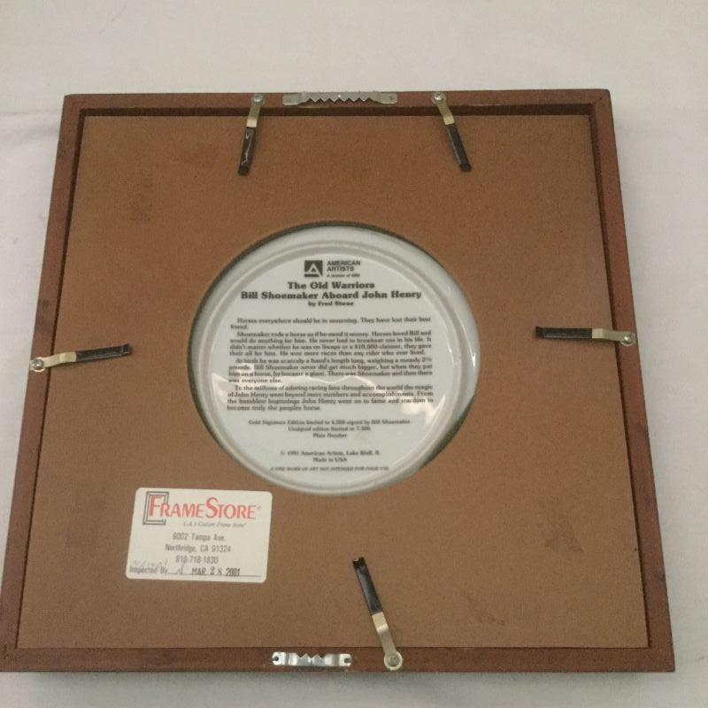 Framed Fred Stone The Old Warriors Bill Shoemaker Aboard John Henry Horse Plate framed