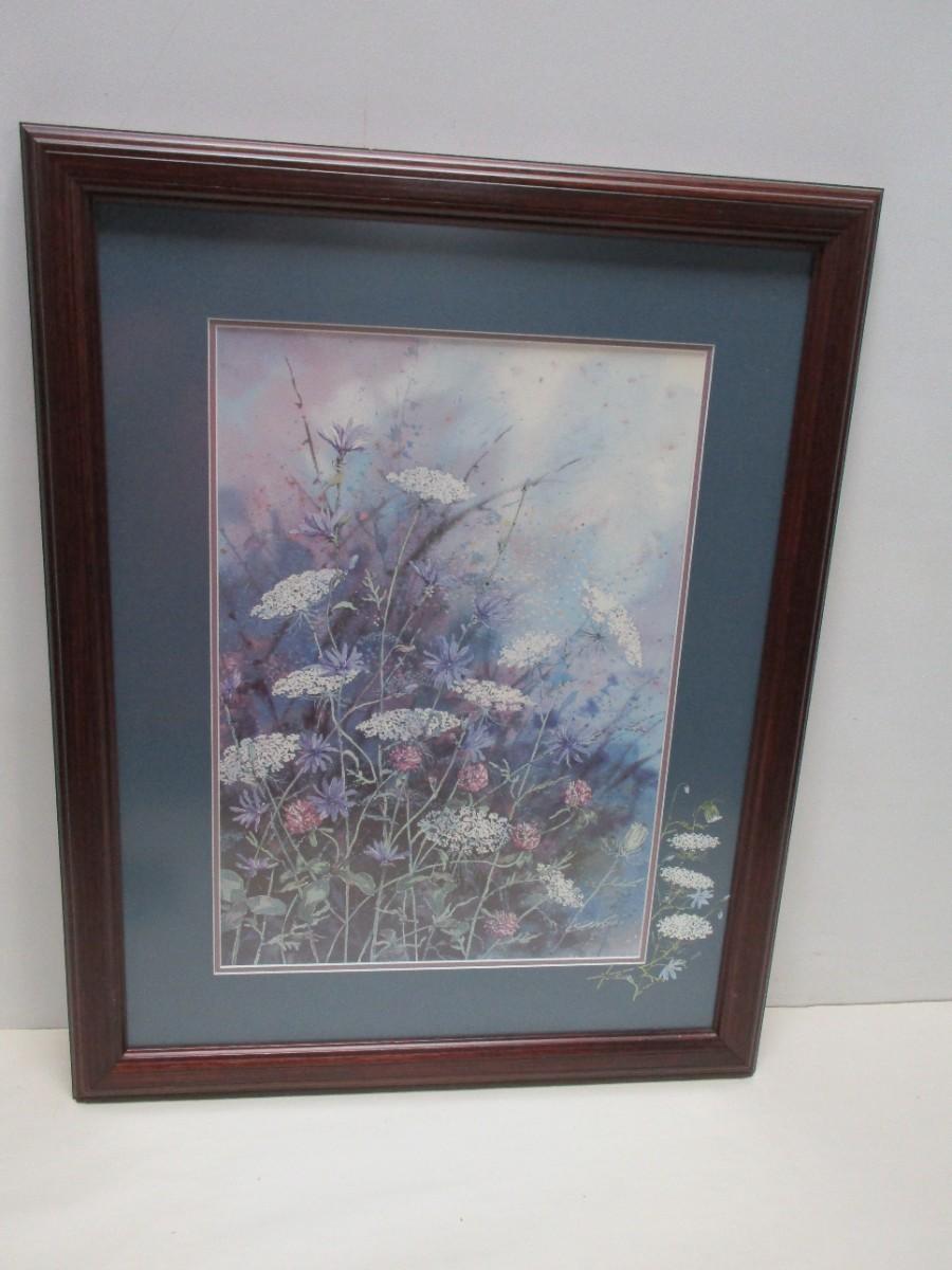 The image has Queen Anne's lace in a field - Offset Lithograph on paper - sight size 24"h x 18"w