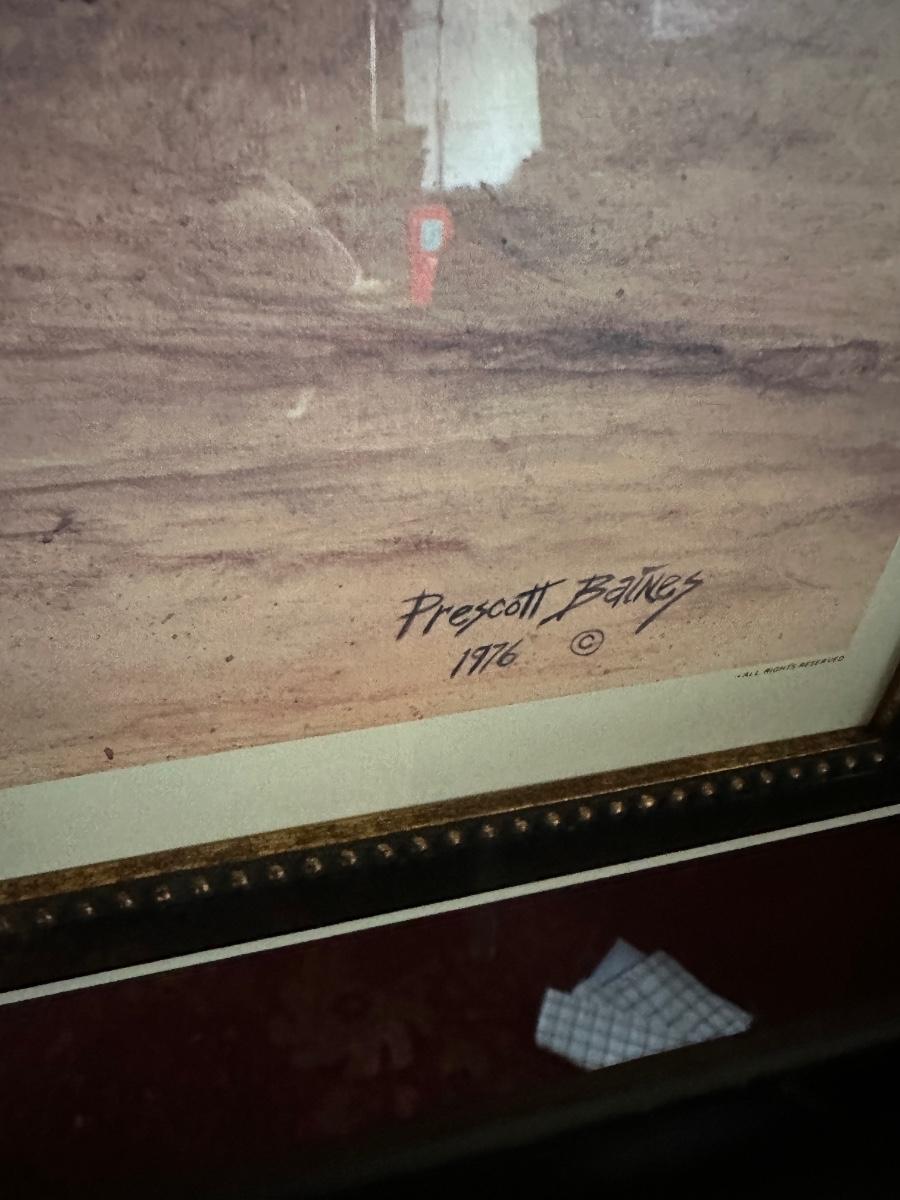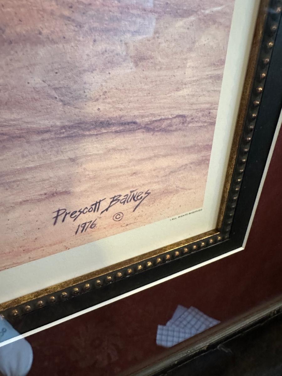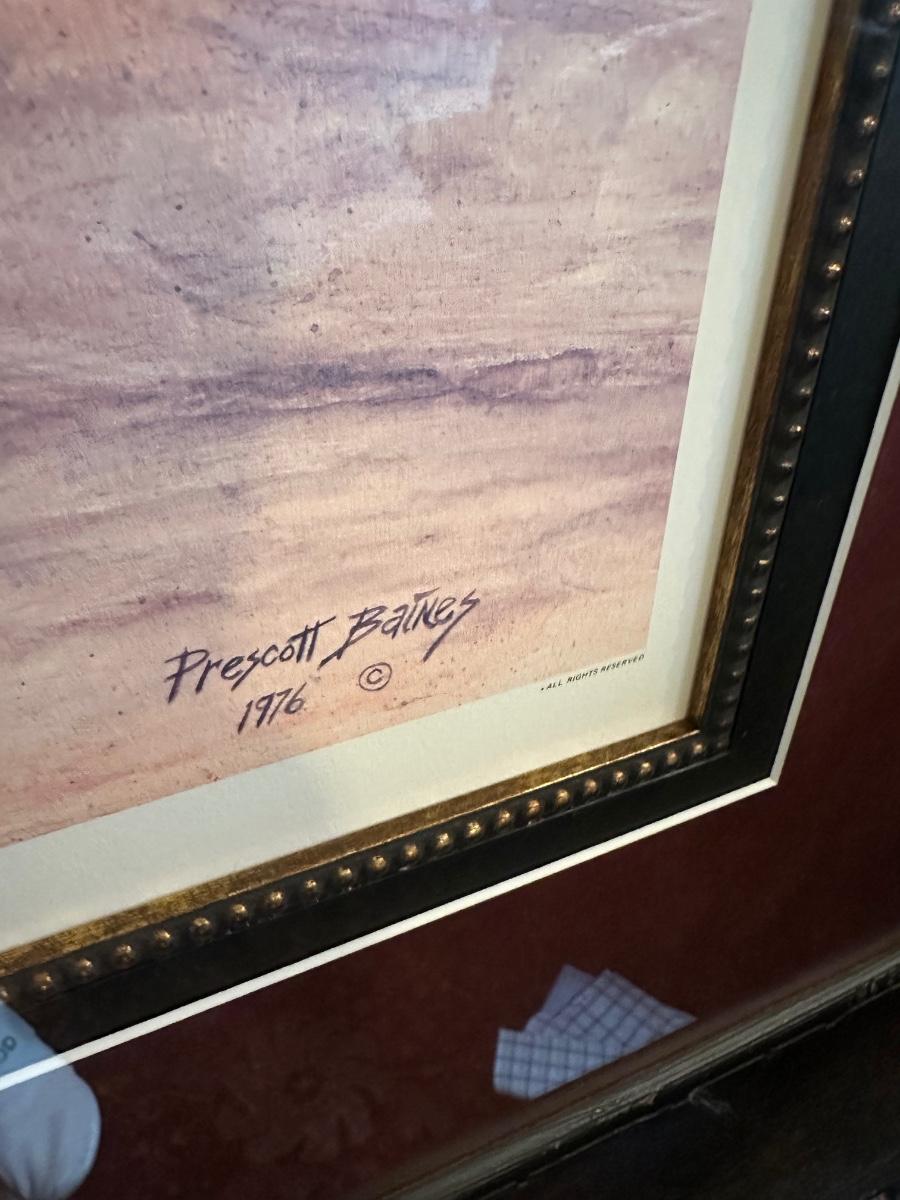 FRAMED GAMECOCK ART, PRESCOTT BAINES 1976 46X37