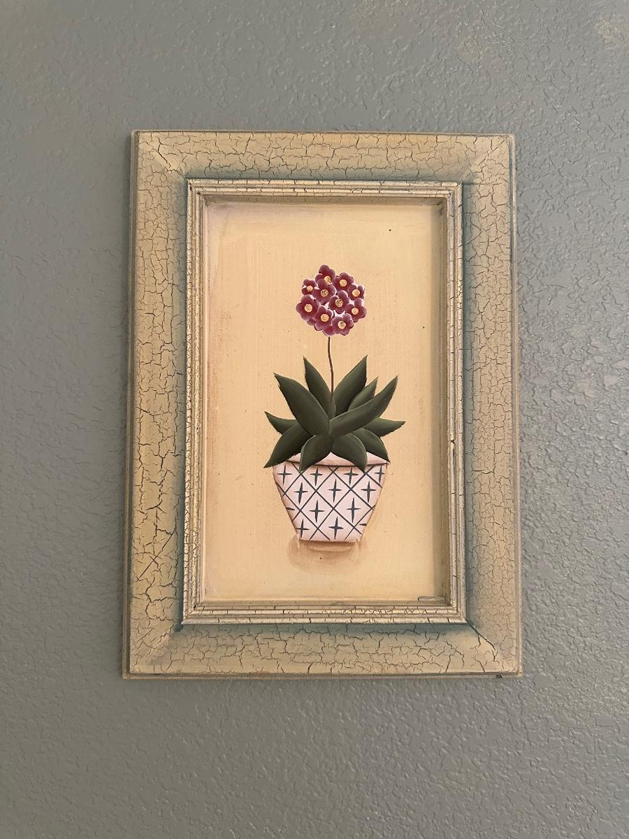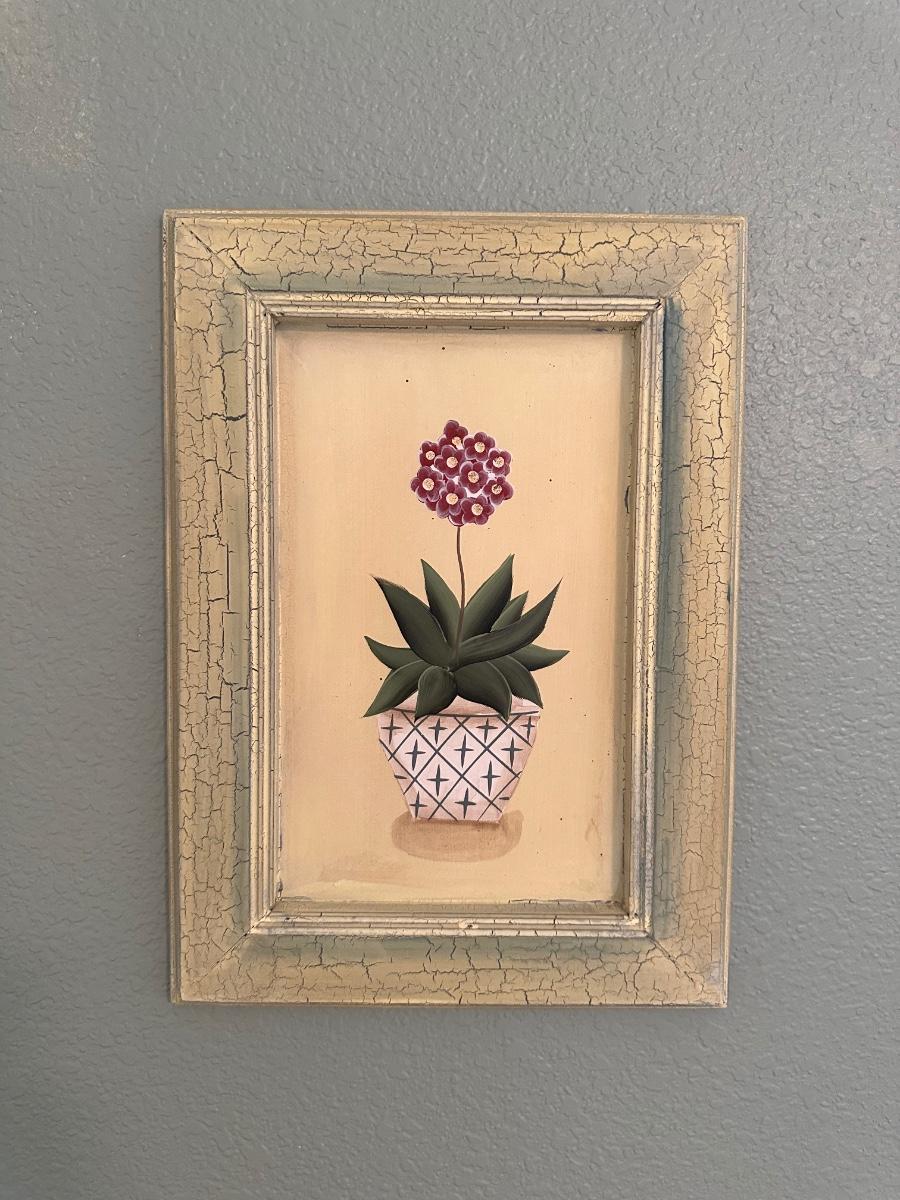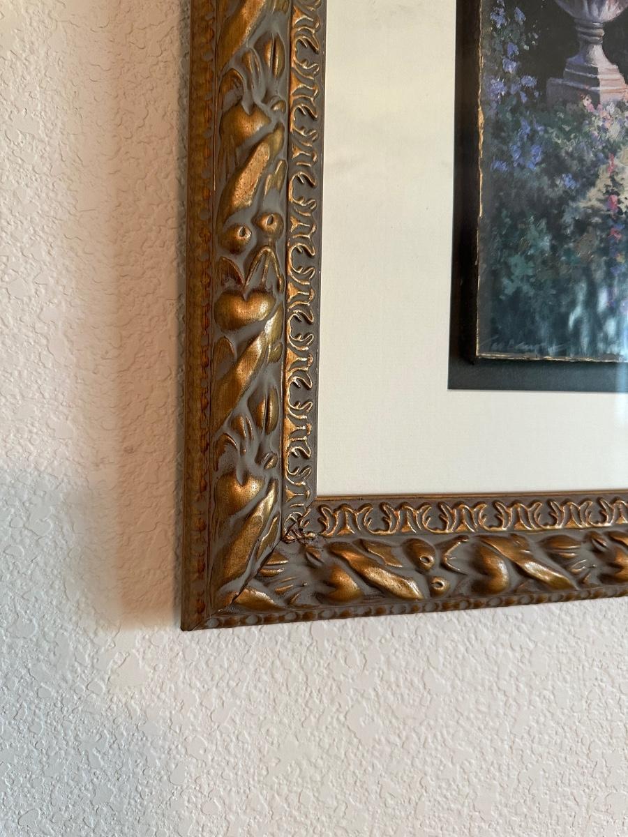 FRAMED GARDEN SCENE PICTURE AND 2 FRAMED FLORAL PICTURES