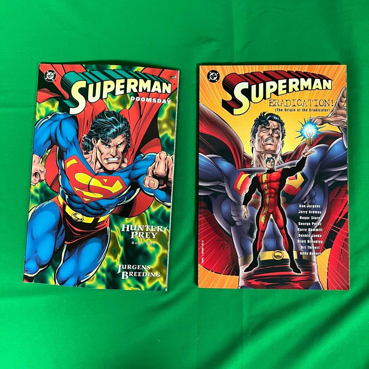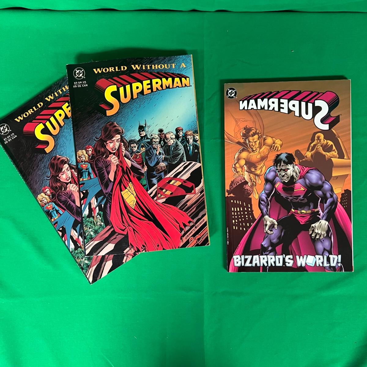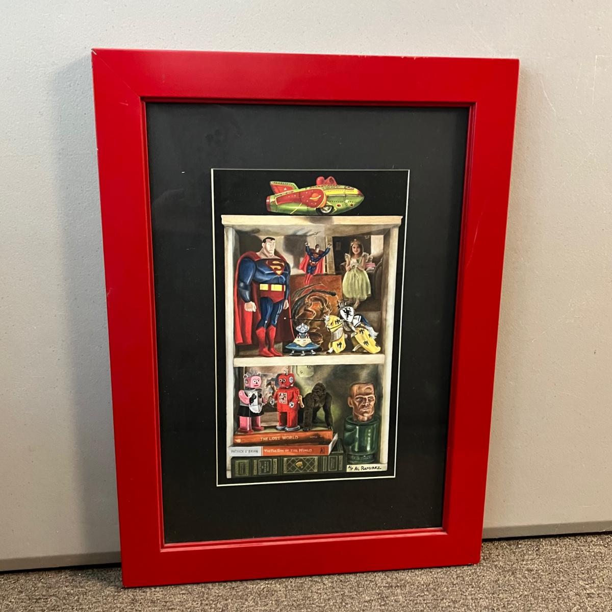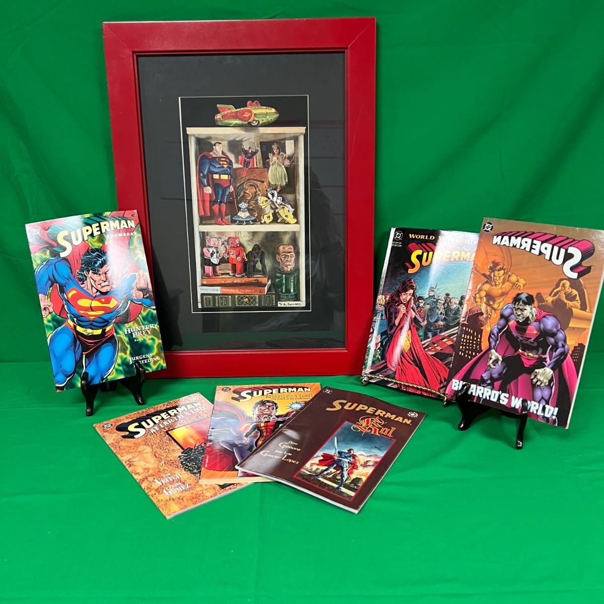 Framed giclee print of an original Al Ramirez matted and behind glass measures 16.25” x .75” x 22.5”H. Two copies of World Without Superman and one copy of Superman Blizzard’s World!, Superman at Earth’s End, Superman Kal, Superman Doomsday and Super Eradication! (The Origin of the Eradicator). Items are sold as-is. No returns or refunds. Please bid accordingly