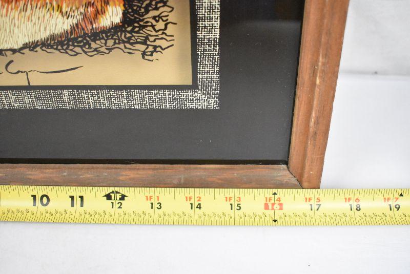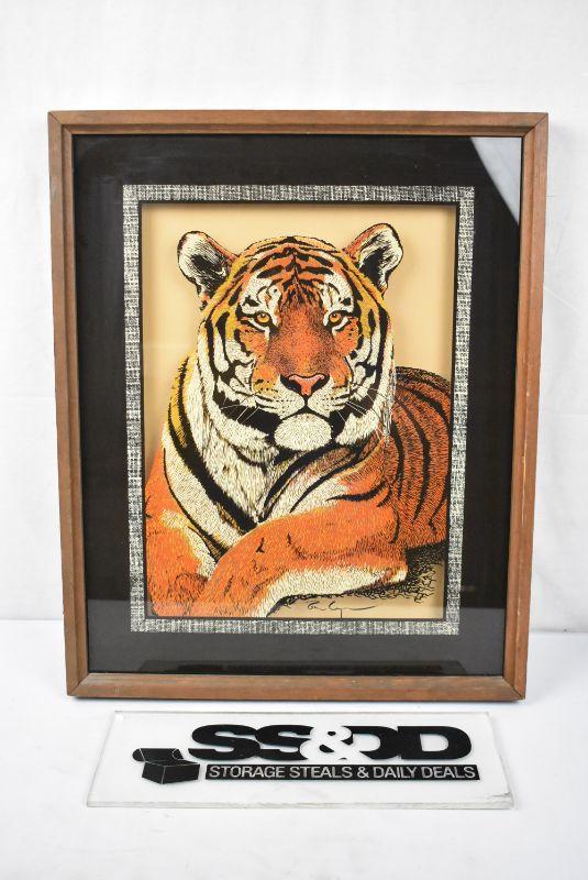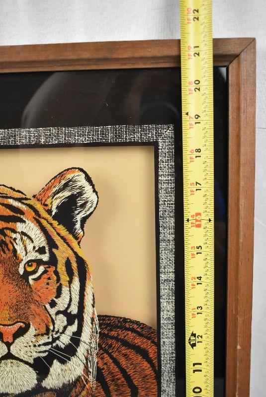 Framed Glass Tiger Artwork, 17" x 21" Vintage