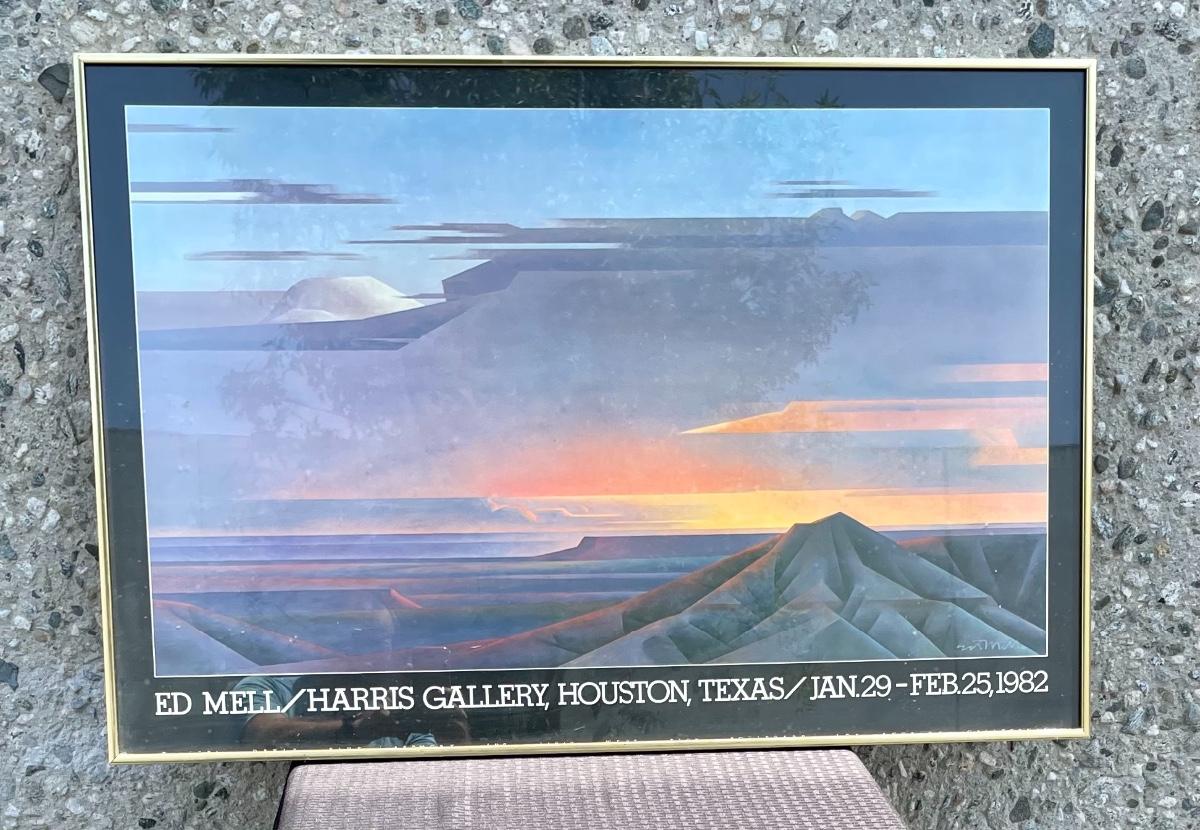 Depicts a sunset view of plateaus, canyons and desert. Approx 38” x 25”.
