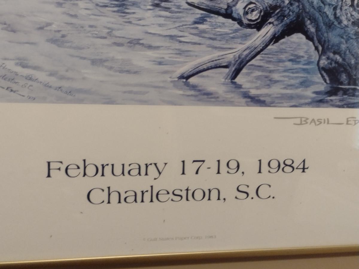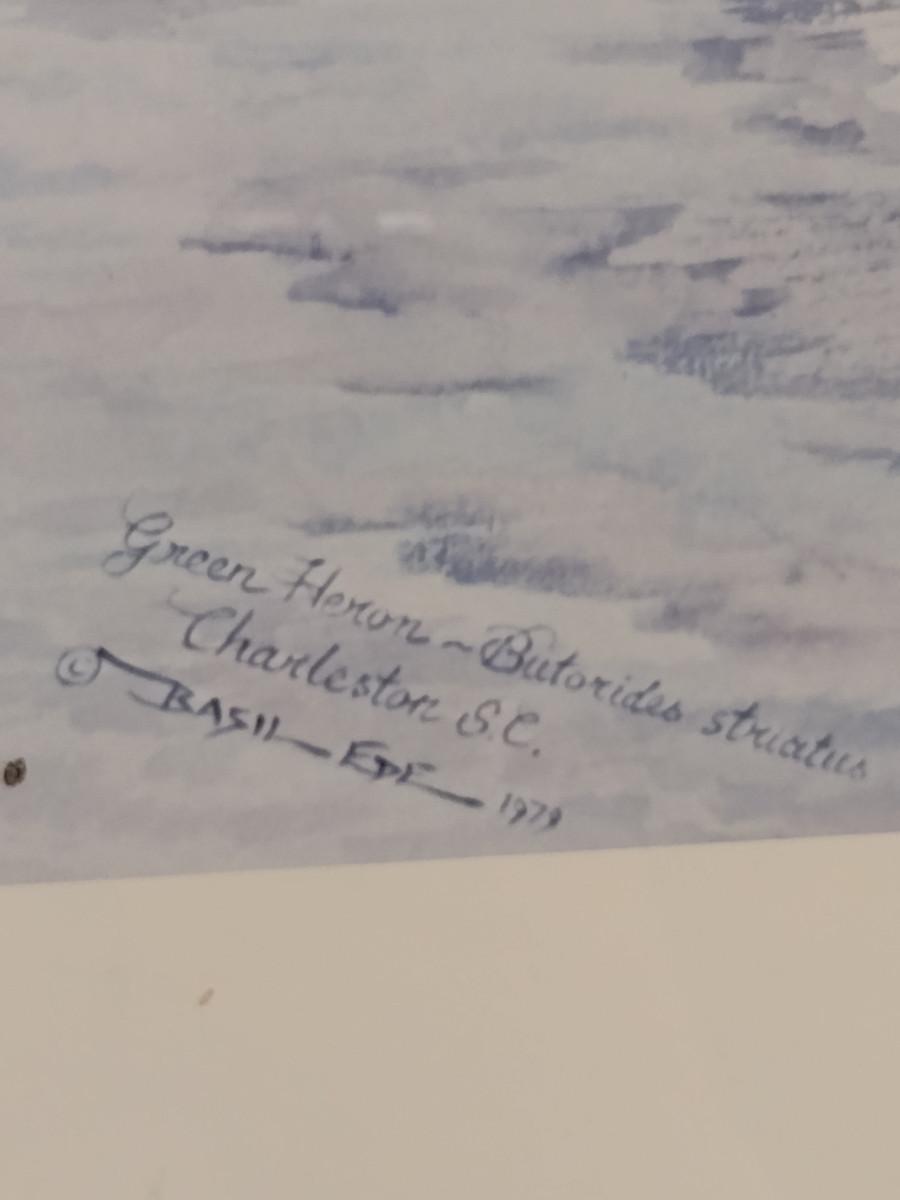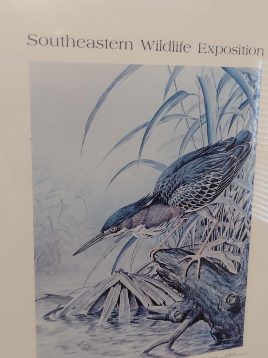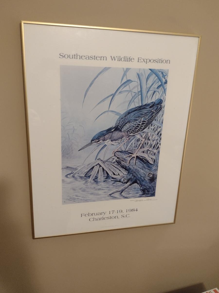 Framed Green Heron Design Wildlife Expo Poster by Basil Ede- Approx 22 1/4" x 28 1/4"