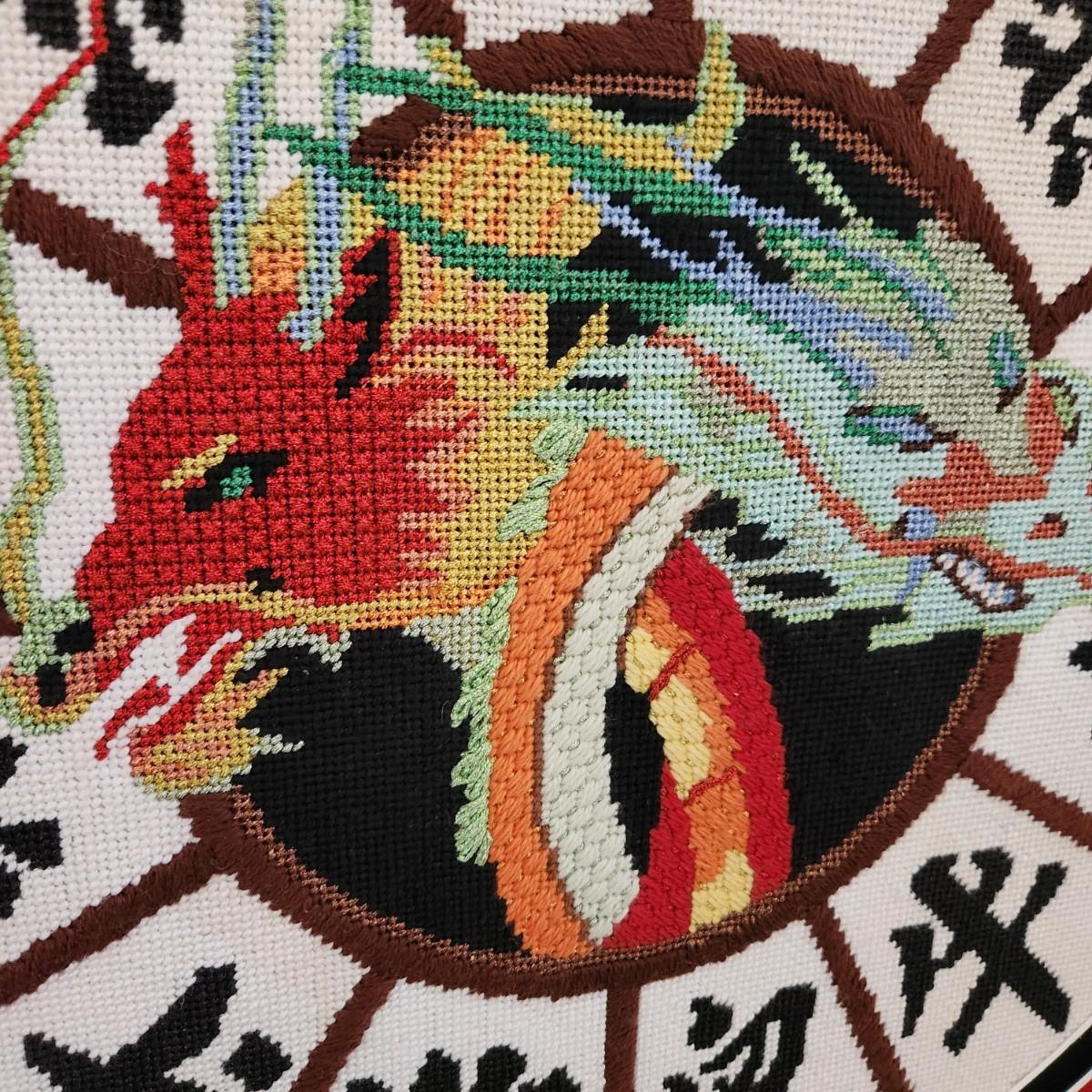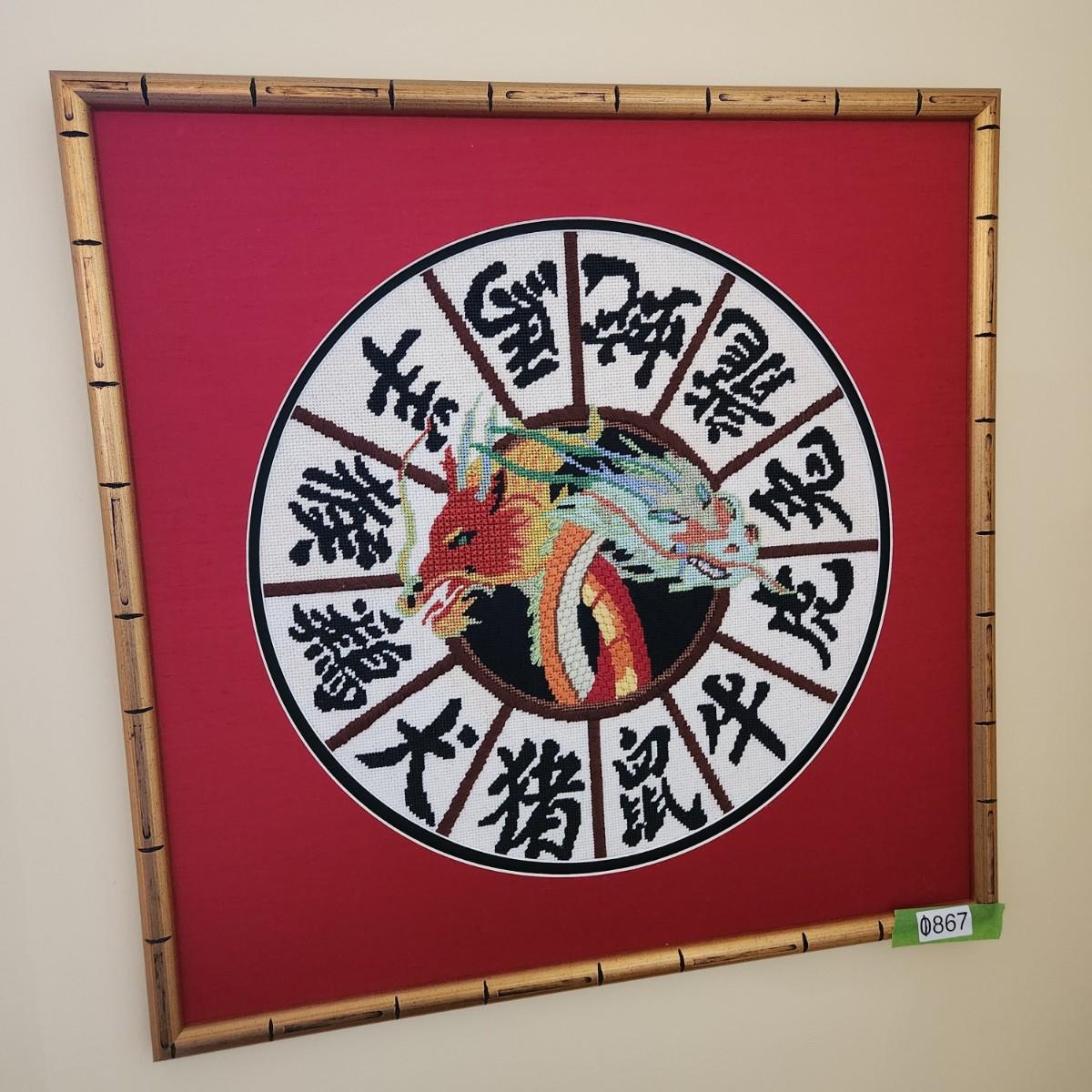 Framed Handmade Chinese Zodiac Dragon Needlepoint 22x22
