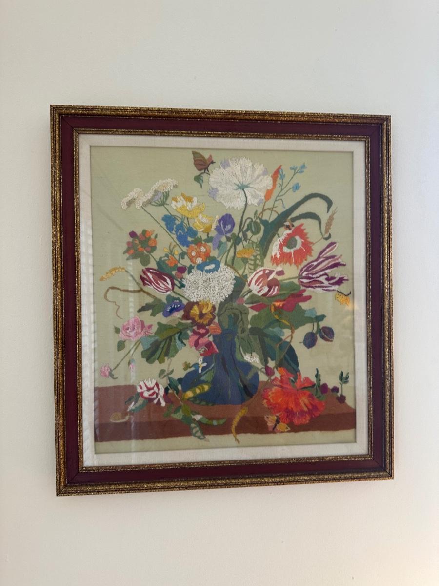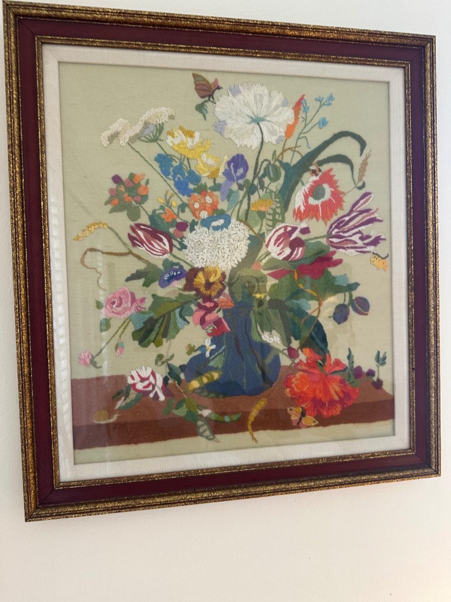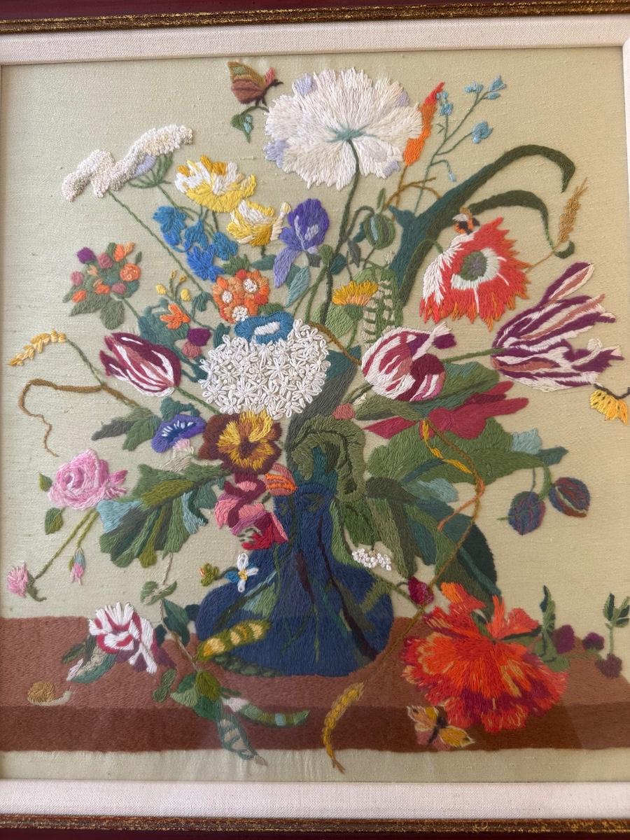 Framed Handmade Crewel Embroidery by Trudy Becnel