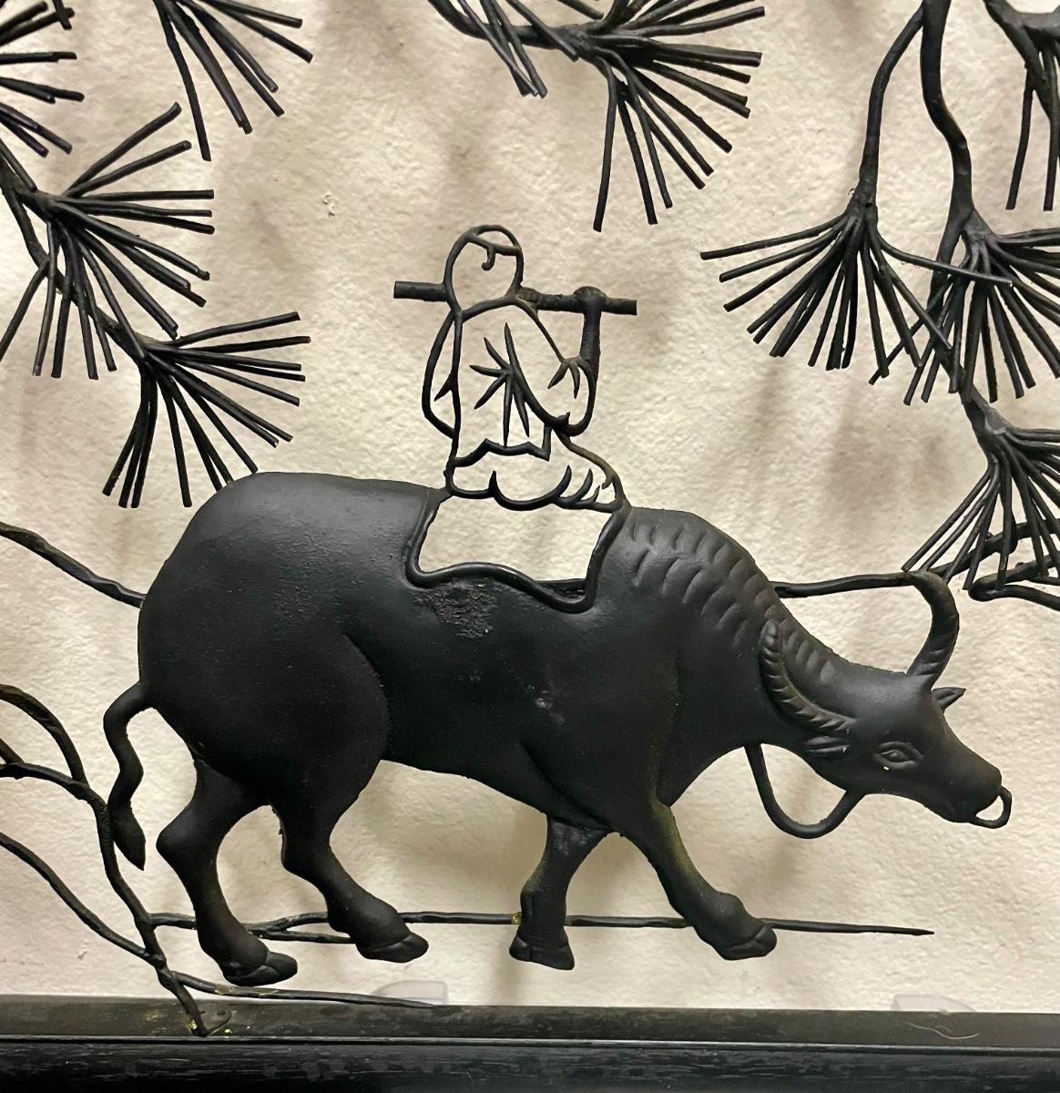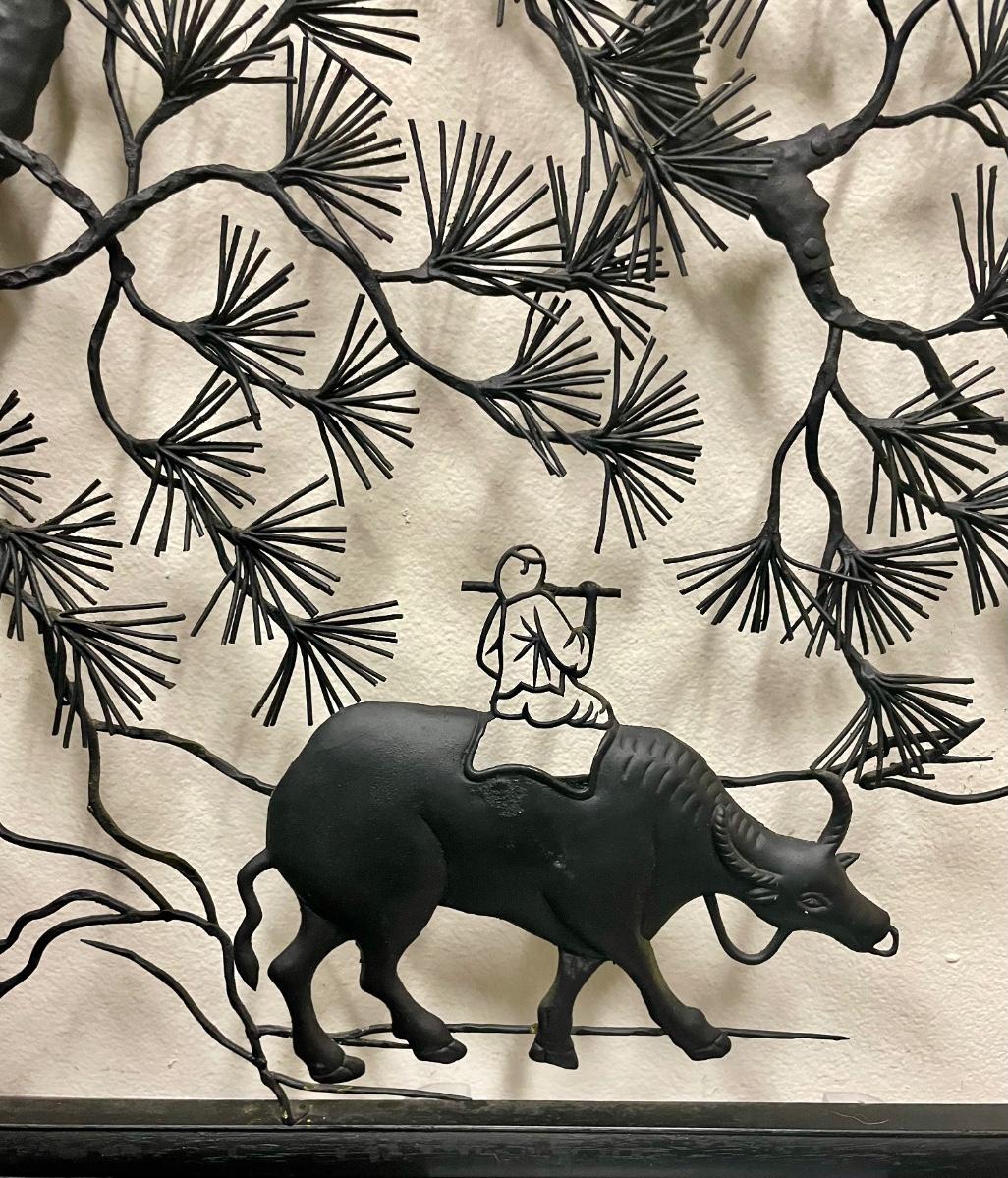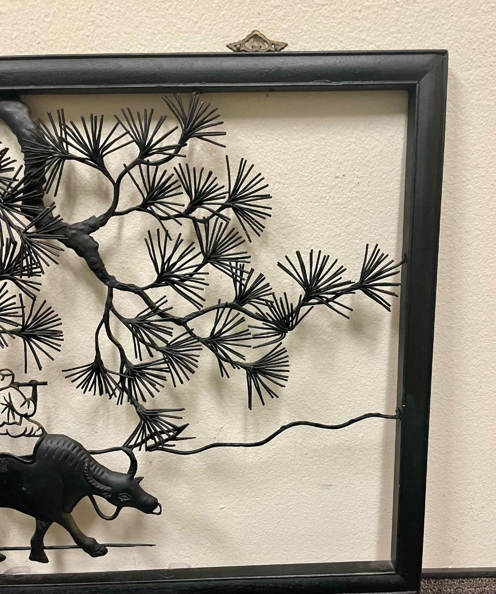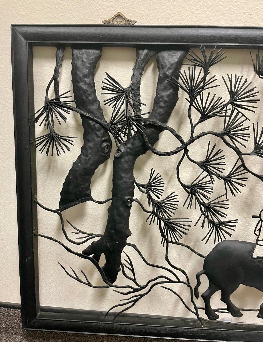 Hanging 3D Black Wall Sculpture Pine Trees with Oxen Float Framed