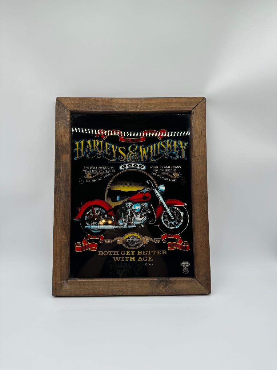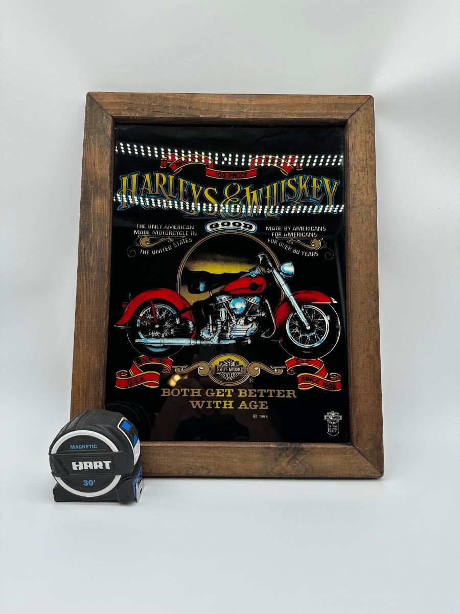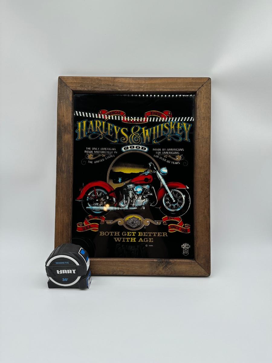 Framed Harley-Davidson “Harleys & Whiskey” Glass Print w/ Wood Frame & Hanger