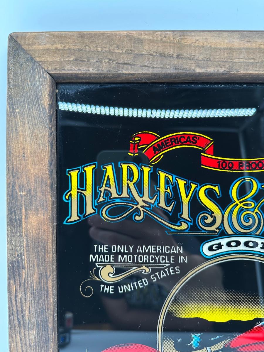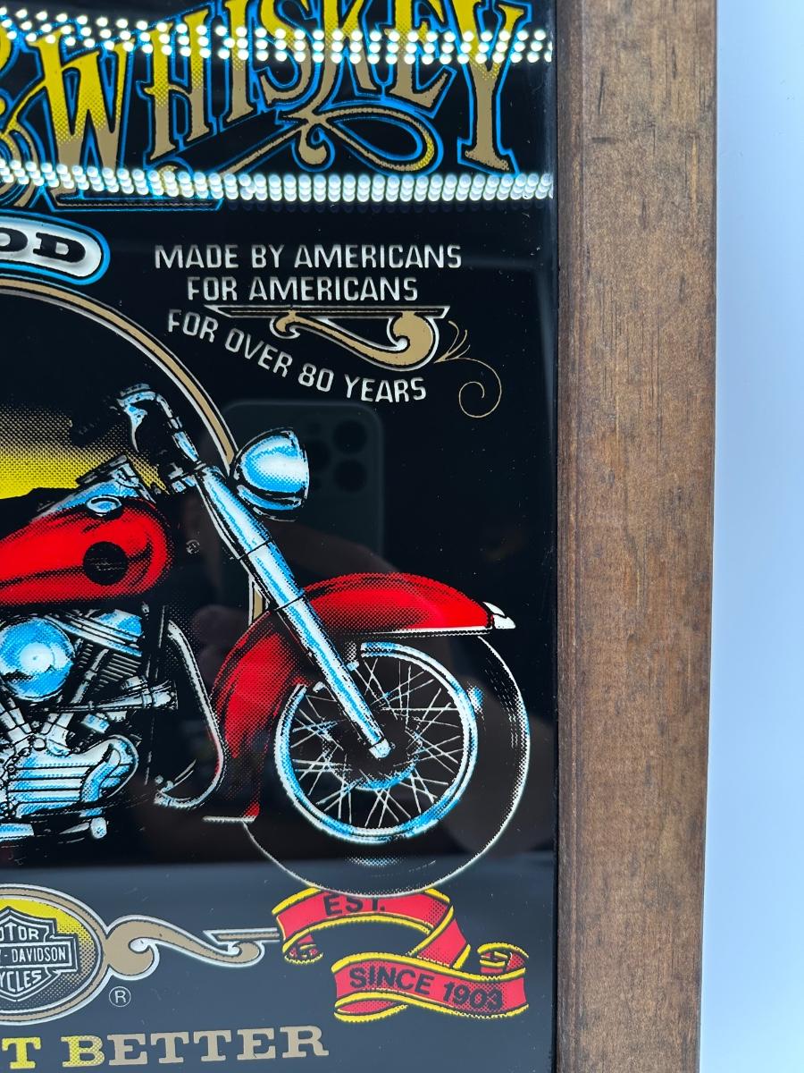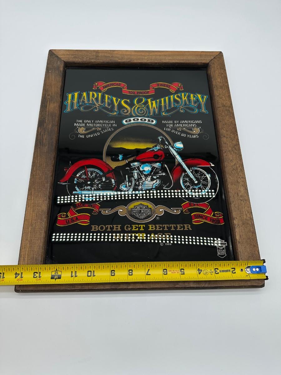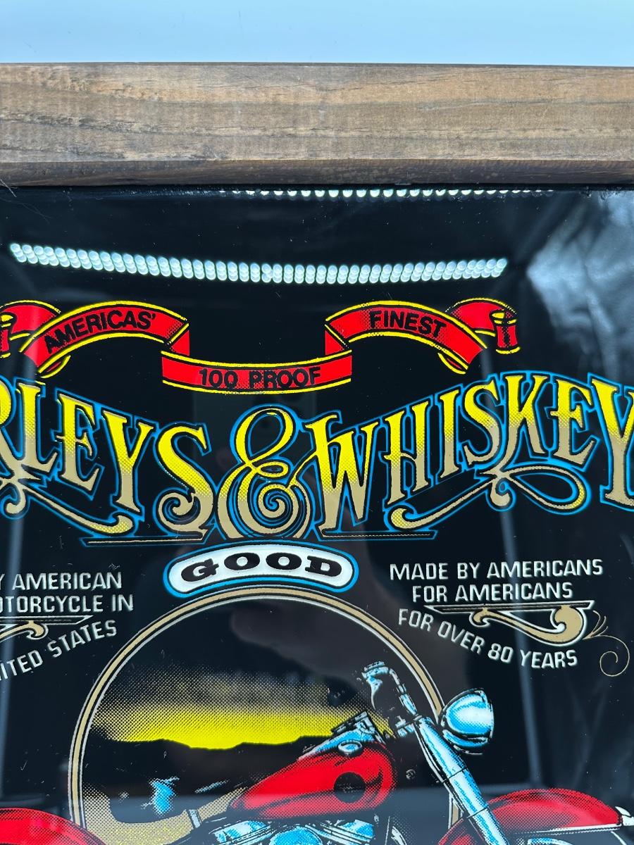 Framed Harley-Davidson “Harleys & Whiskey” Glass Print w/ Wood Frame & Hanger