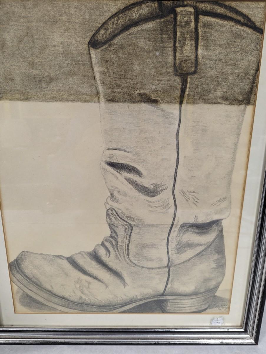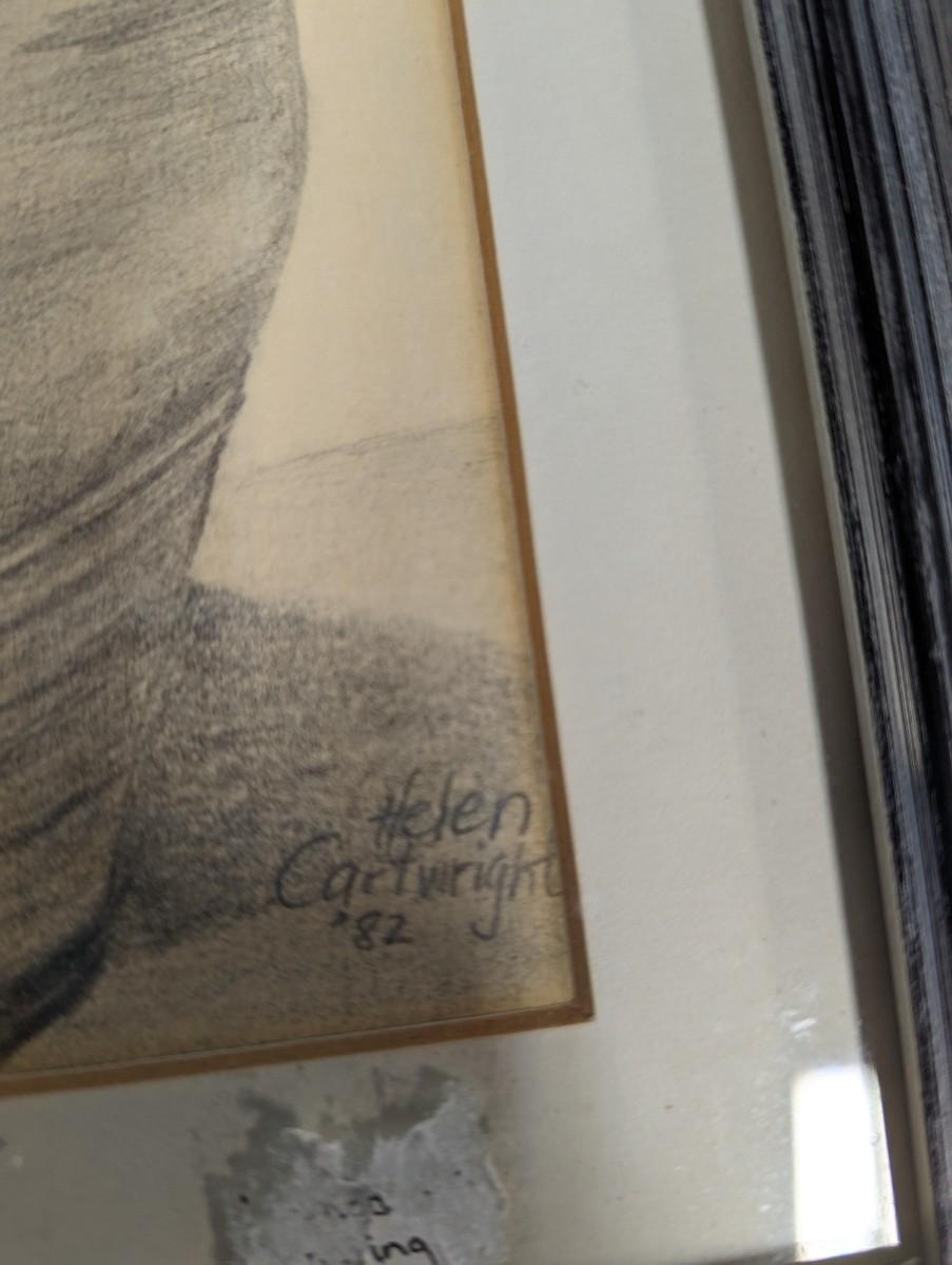 Framed Helen Cartwright Charcoal Drawing 17 1/2" x 21 1/2"