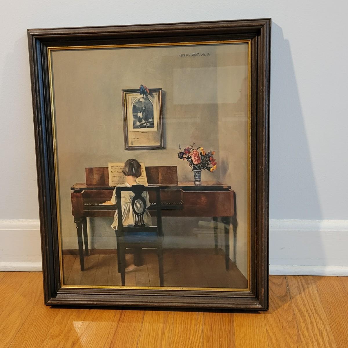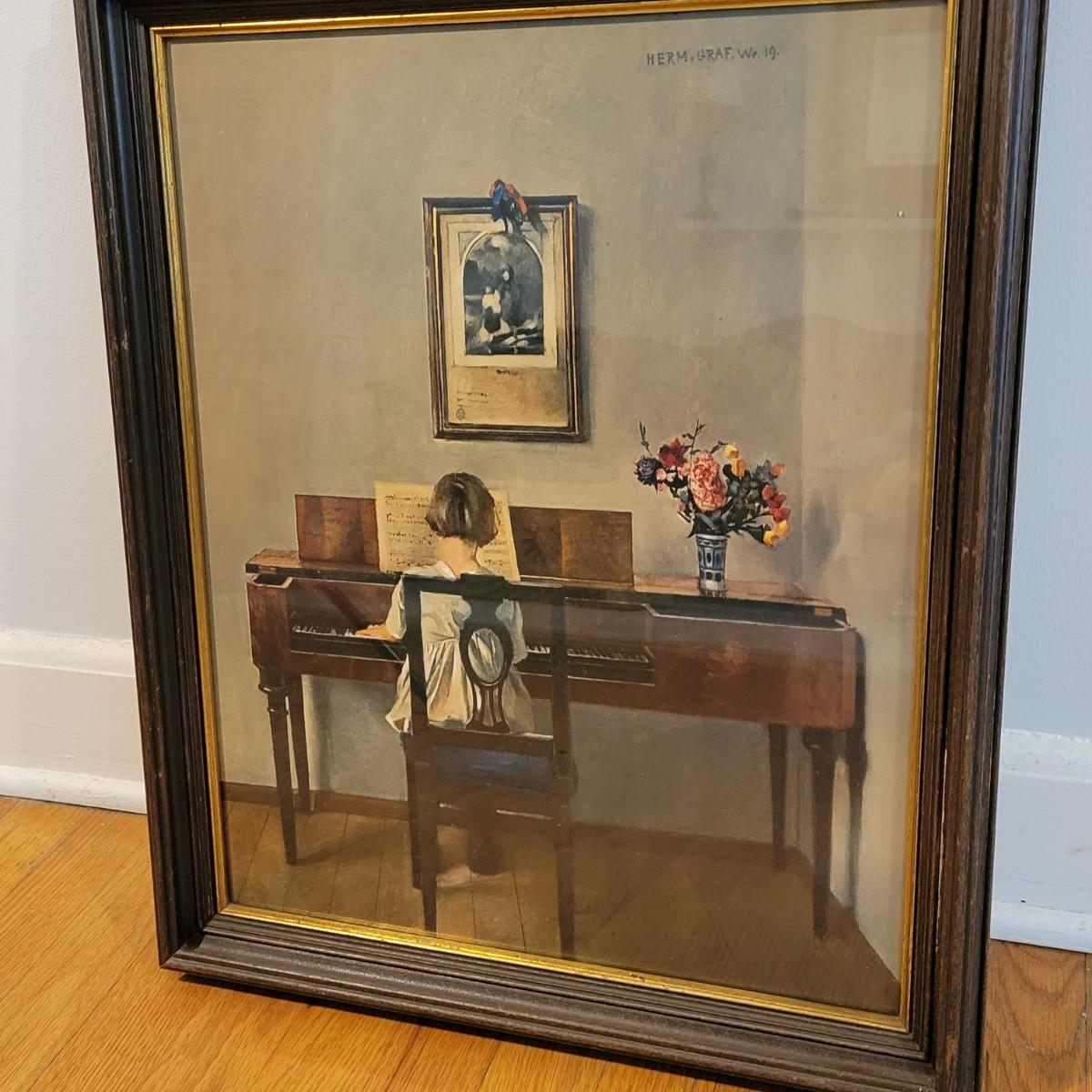 Framed Herman Graf print in good condition. Wooden frame with a golden lip. Corners are still tight and the glass has no blemishes. Frame does have some small scuffs, but no deep gouges. Measures approximately 18" x 21.5" x 1.75" Shipping available. Shipping Art can be costly please call UPS store at 828-252-6930 for quote.