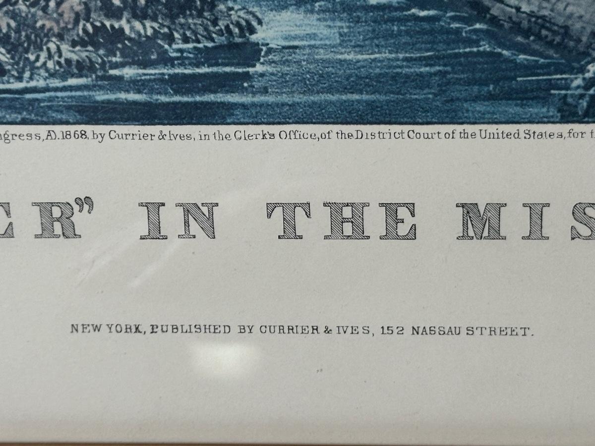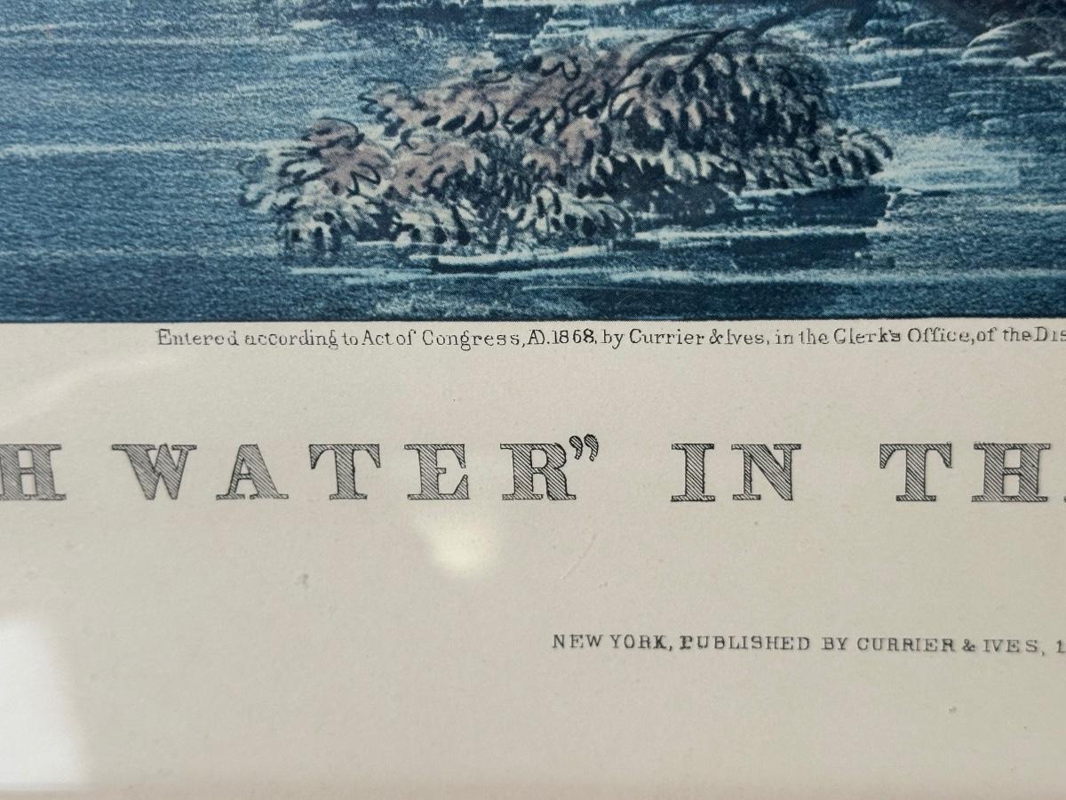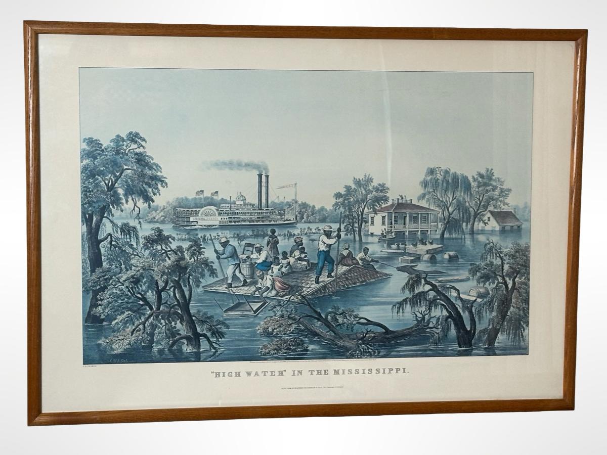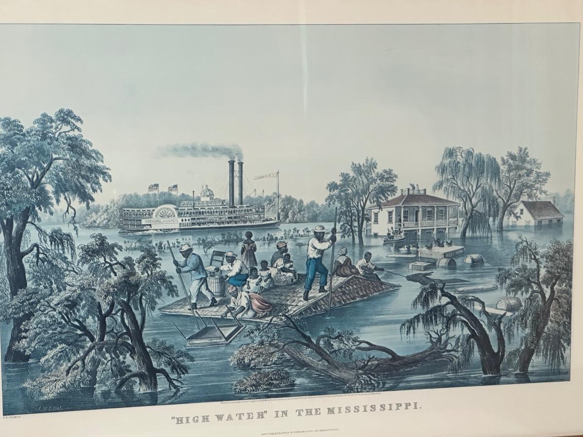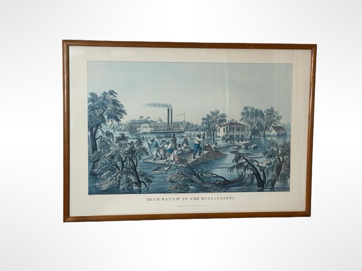 “Framed Currier & Ives print titled ‘High Water in the Mississippi.’”