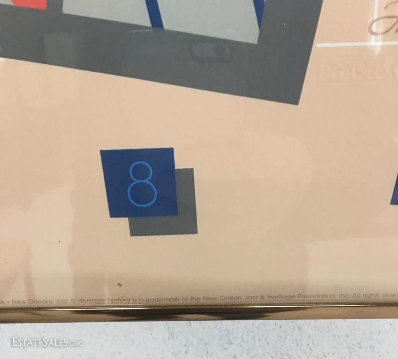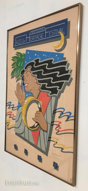 This is a signed numbered (4103/12,500) print by Hugh Ricks for the 1983 Heritage Jazz Festival, New Orleans Louisiana. Poster is under glass and in excellent condition. See photos for small chip out of glass frame.