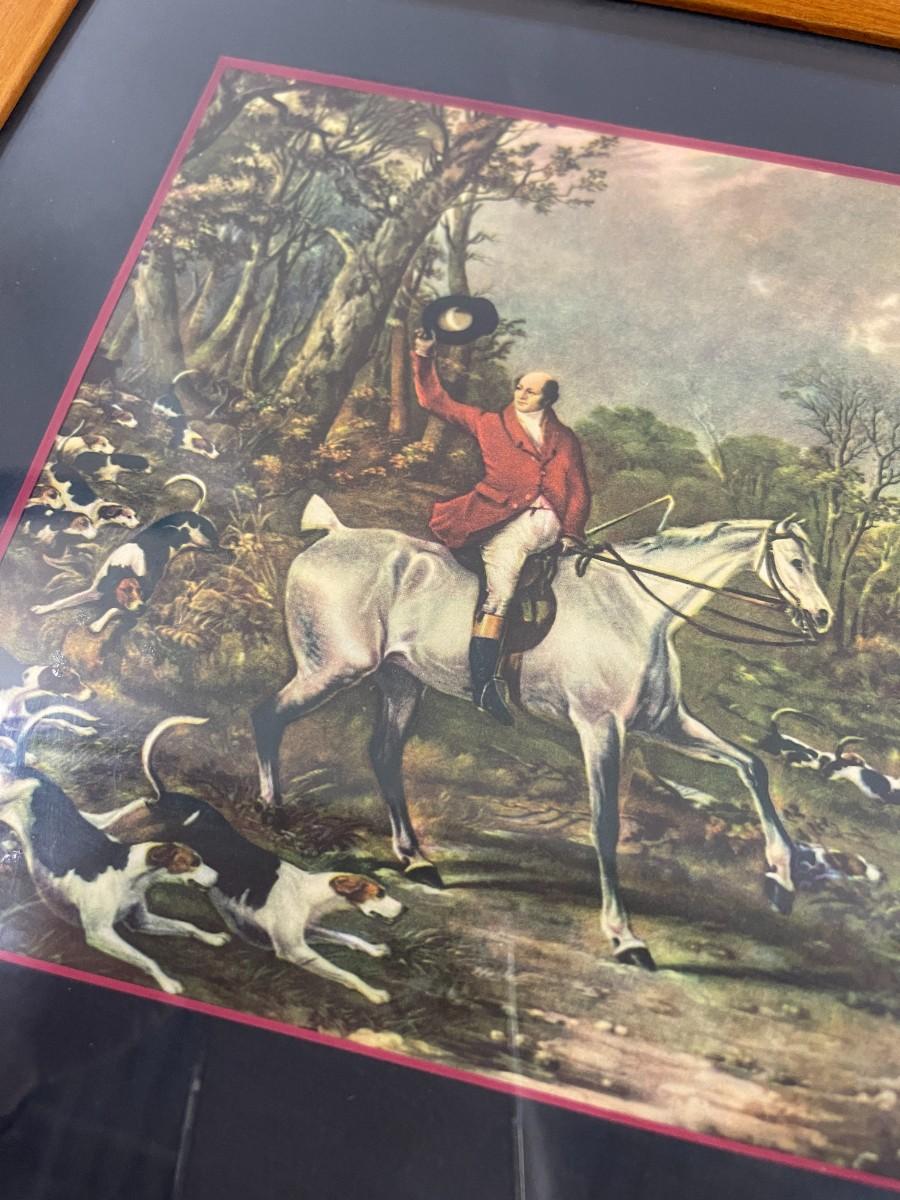 Framed print titled Hunts & Coaches by Henry Thomas Alken. Custom framed. This is the first we have of a series of 3. Frame shows minor wear. Frame: 11" x 13"; Image size: 9" x 11".