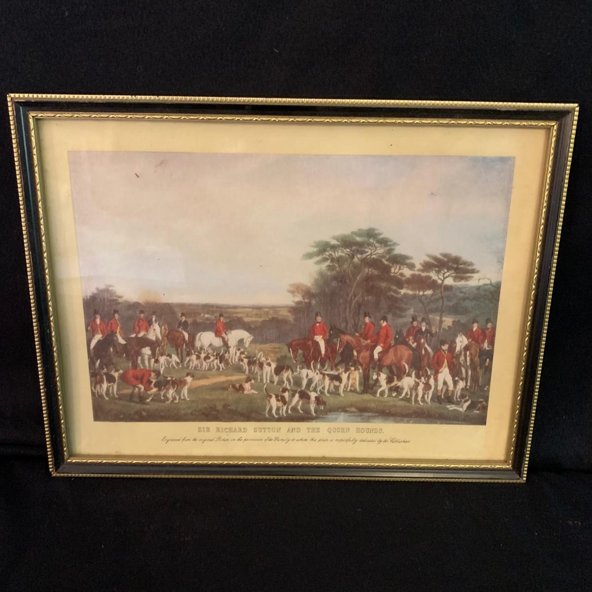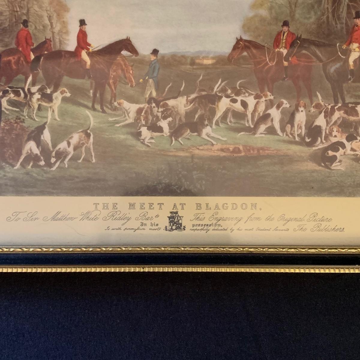 Framed hunting prints behind glass. Lot includes the “Bury Hunt”, “The Meet At Blagdon”, “Sir Richard Sutton And The Quorn Hounds”, and “The Meeting Of Her Majesty’s Stag Hounds On Ascot Heath”. Lot also includes two cork-backed coaster. Each frame measures 11” x 8.5”. Please see photos for more details. Shipping available. Shipping can be costly. We suggest contacting our preferred local shipping provider, Postage Express, with dimensions and getting an estimate before bidding: (828) 670-5501 or postageexpress@yahoo.com.