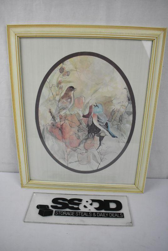 Framed Image 2 Birds, Watercolor & Ink by Barbara Waldon, frame is 18.5" x 22.5"