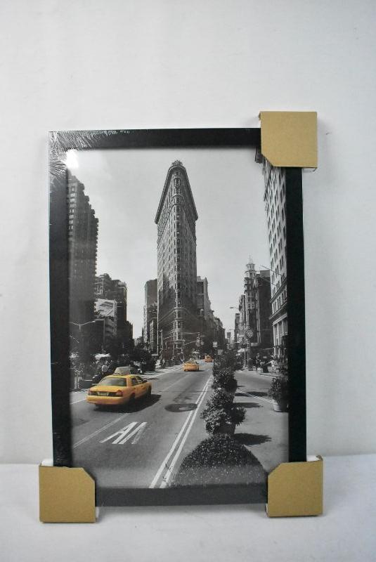 Framed Image Flatiron Building B&W with Yellow Taxi Cabs 12" x 18" - New