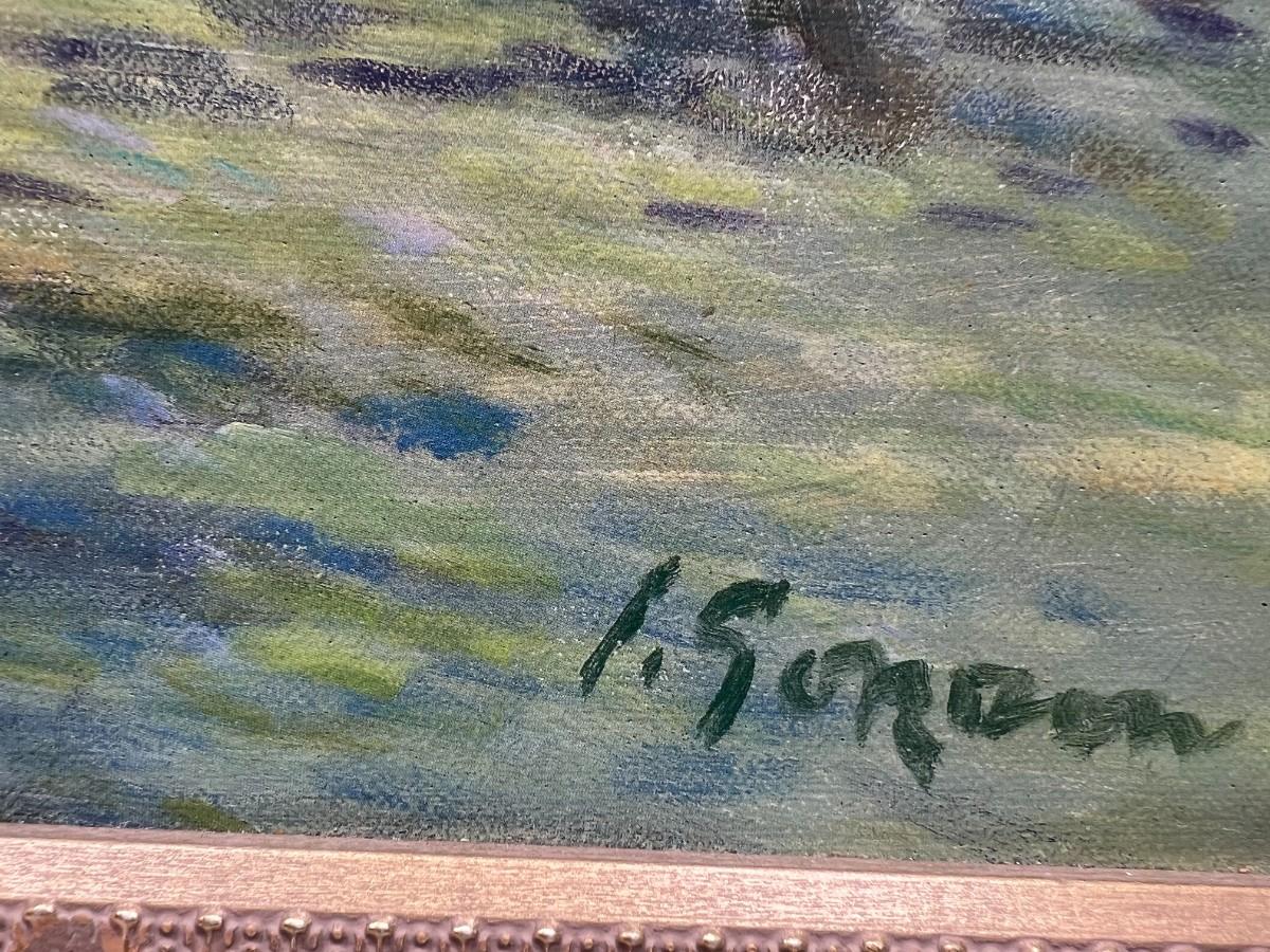 There is no significant damage to the canvas or the frame and is in overall good displayable condition. Check pictures for more details and for sizing.