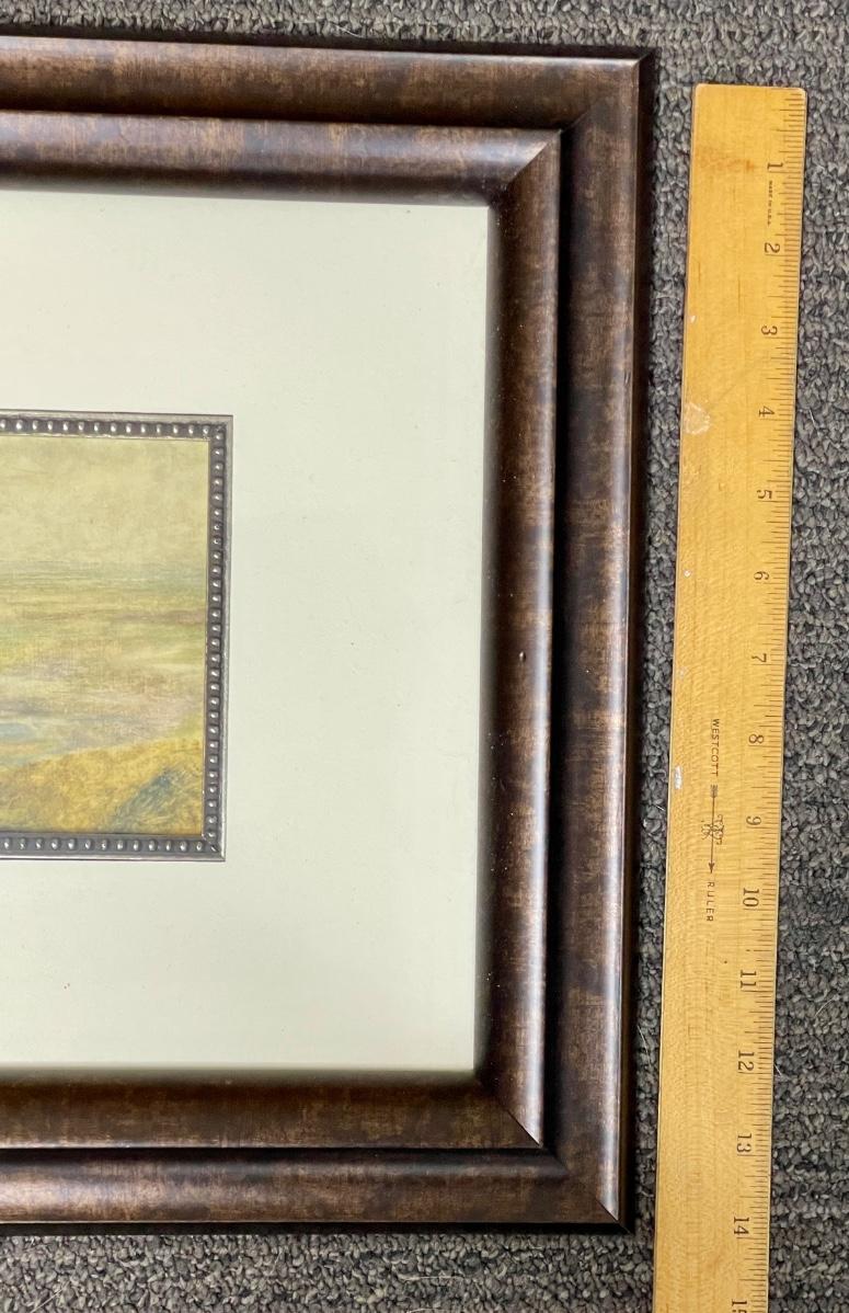 Regattas at Argenteuil by Claude Monet 1874 and Seashore at Guernsey 1883 - Pierre Auguste Renoir. Both prints are matted and framed. Artworks are approx. 5" x 7", frames measure approx. 14" x 17". Good condition.