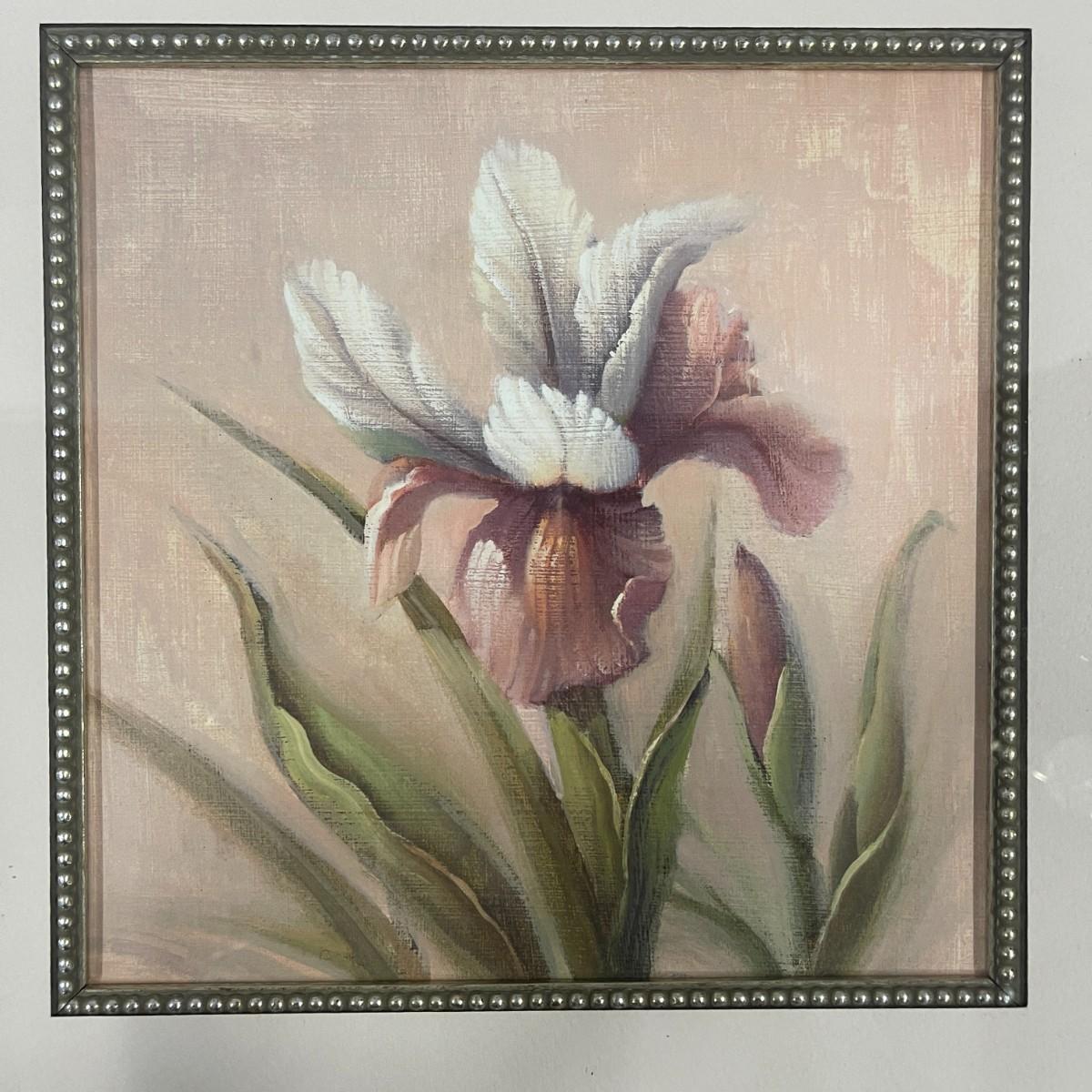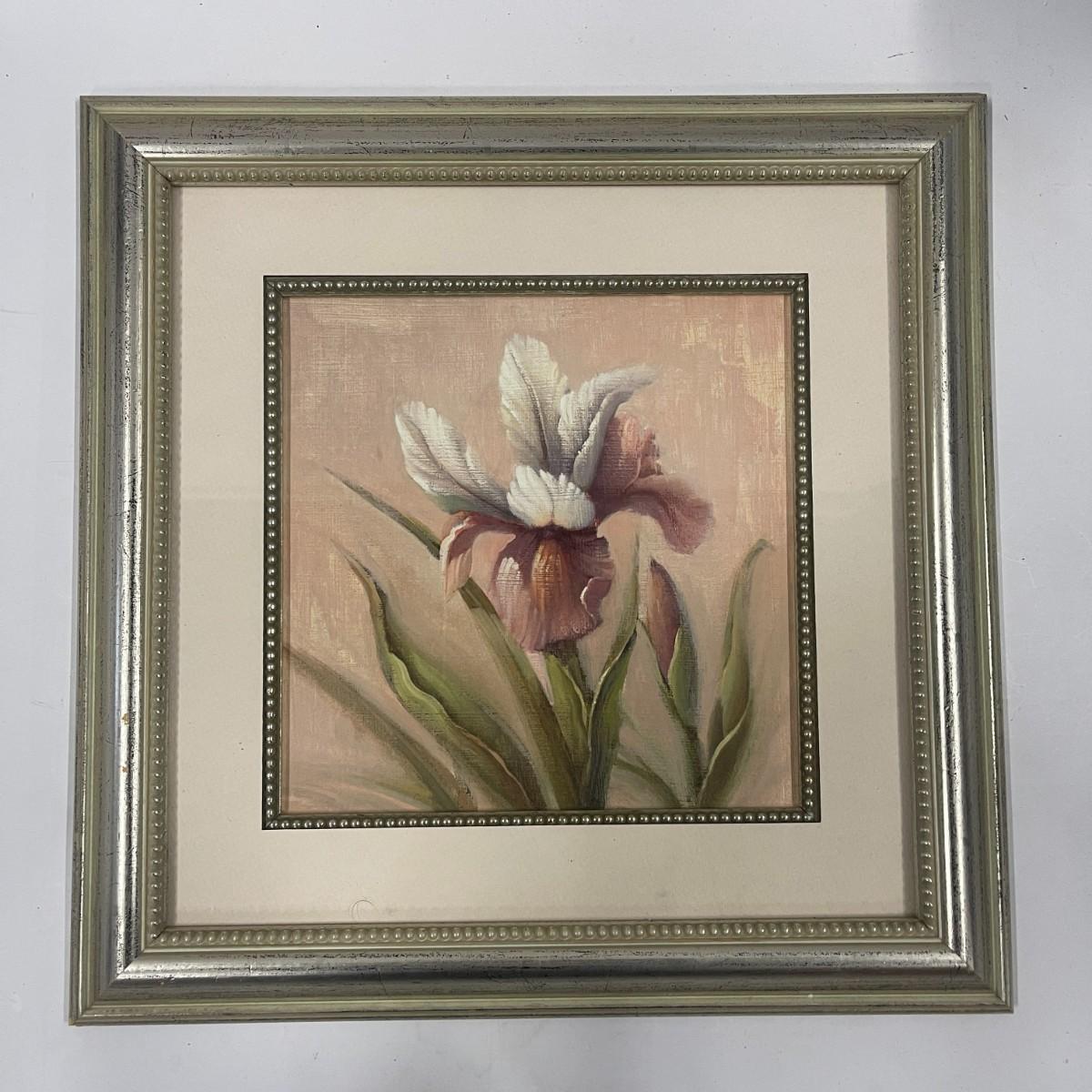 Framed flower print. Frame has a few small chips. 14 1/2" x 15".