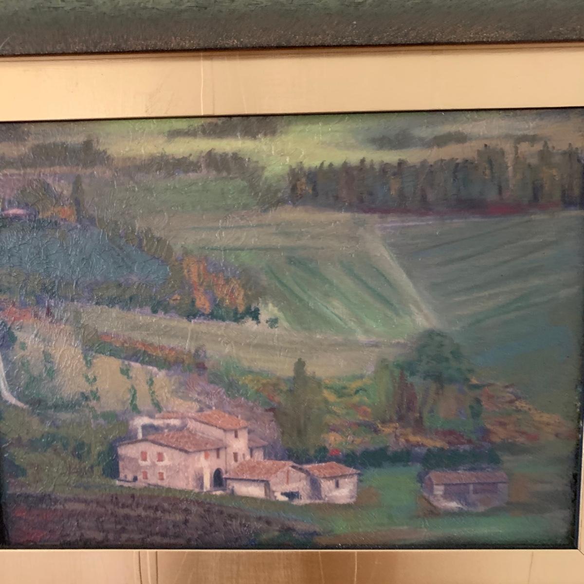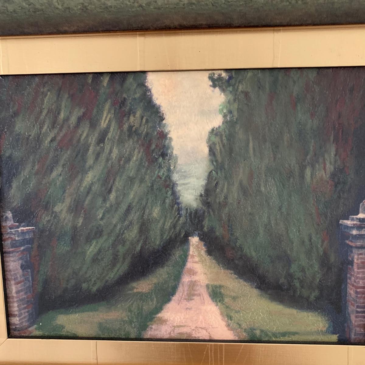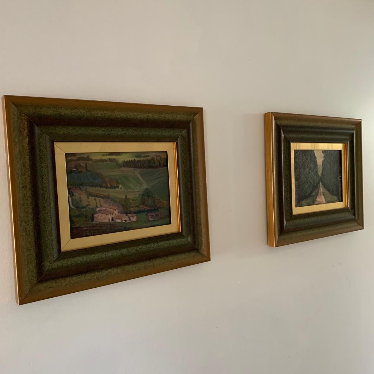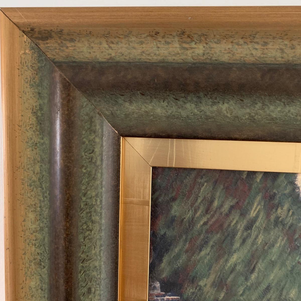 Two framed landscape prints on board. Prints are textured and framed in vinyl gold colored frame. Each frame measures, 19” x 16.5”. Shipping available. Shipping can be costly. We suggest contacting our preferred local shipping provider, Postage Express, with dimensions and getting an estimate before bidding: (828) 670-5501 or shipping@postageexpressnc.com.