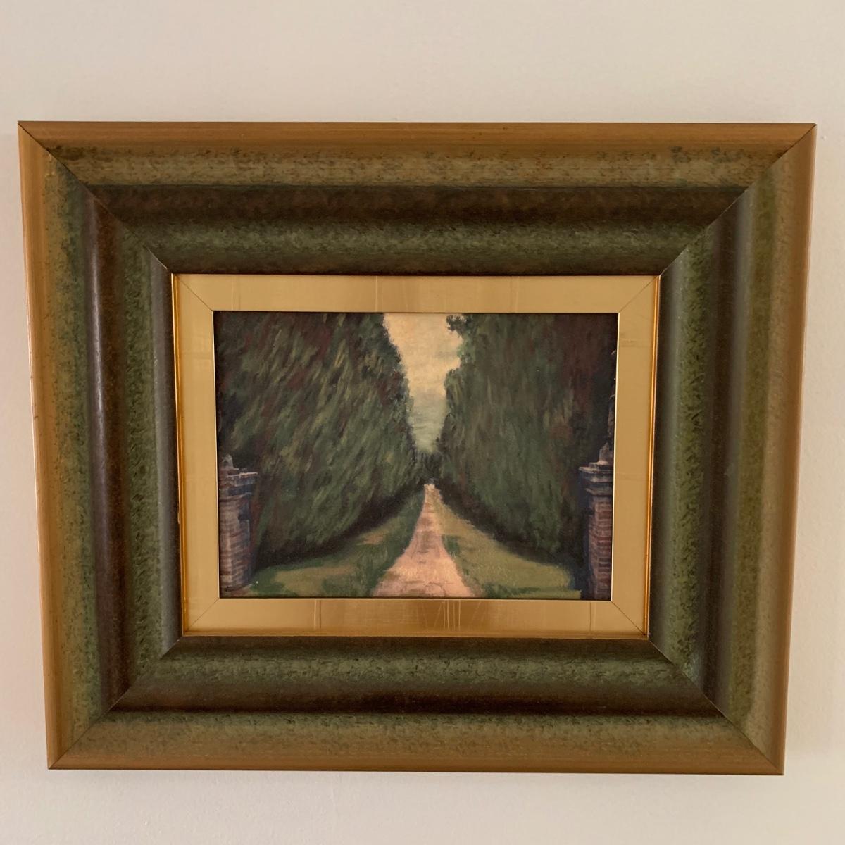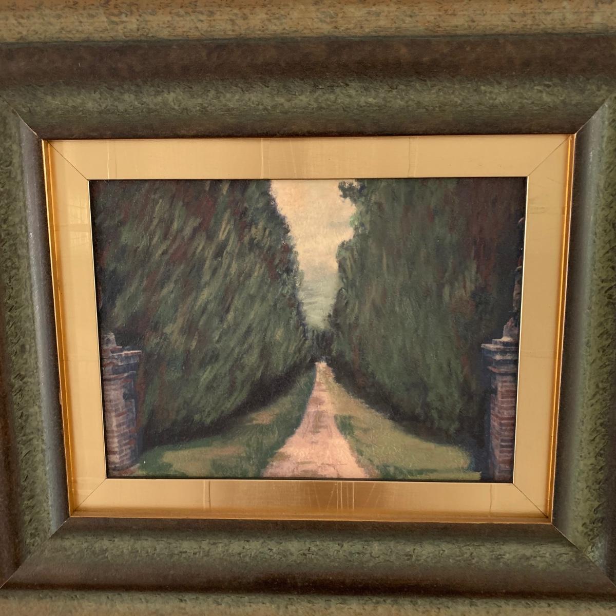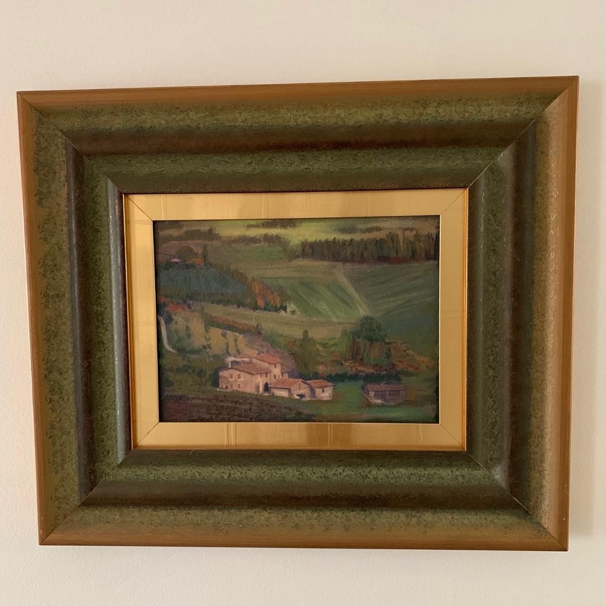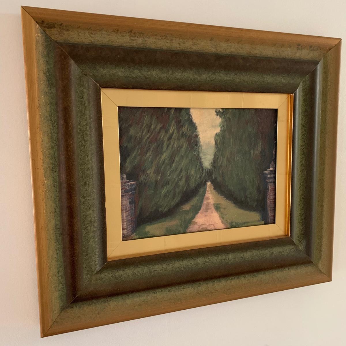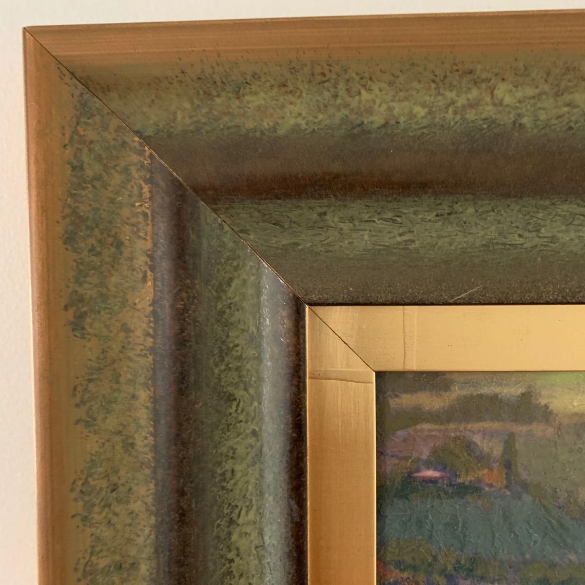 Two framed landscape prints on board. Prints are textured and framed in vinyl gold colored frame. Each frame measures, 19” x 16.5”. Shipping available. Shipping can be costly. We suggest contacting our preferred local shipping provider, Postage Express, with dimensions and getting an estimate before bidding: (828) 670-5501 or shipping@postageexpressnc.com.