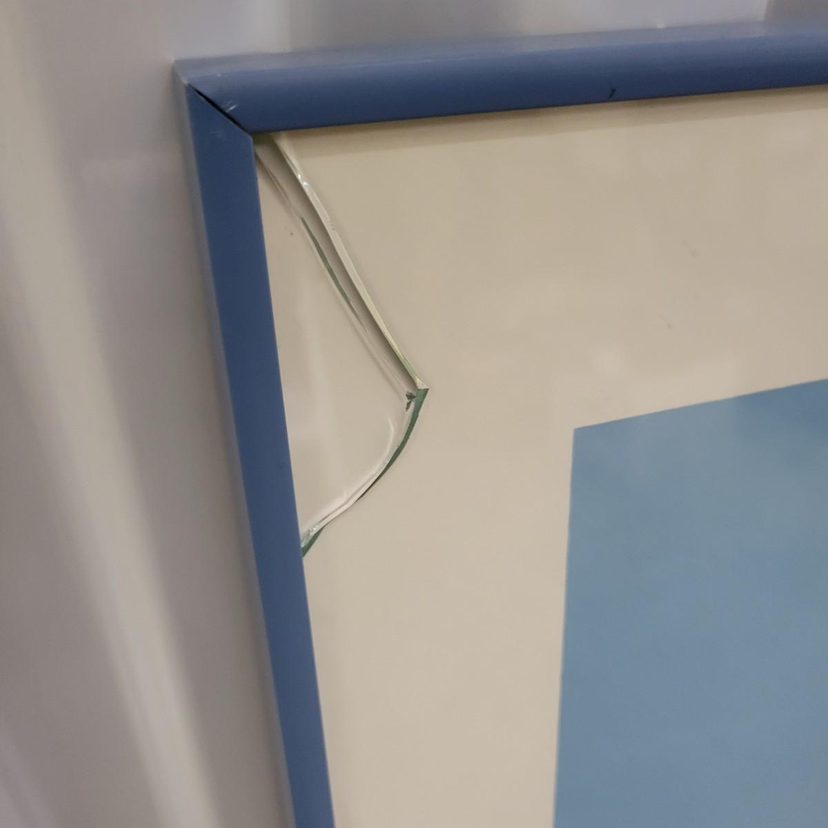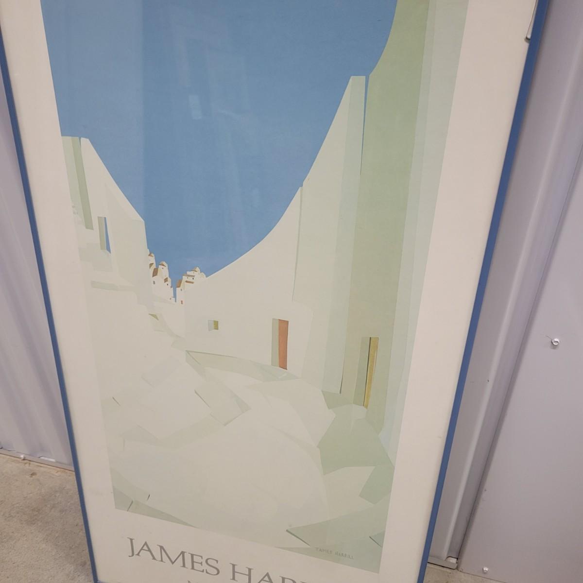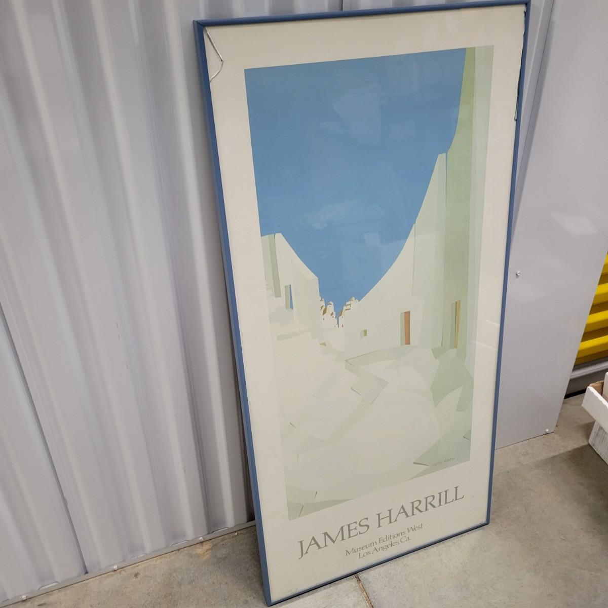 A framed poster by James Harrill in good condition, but the glass is broken in two areas. Poster appears to be drymounted and has a blue metal frame. Measures approximately 19.5" x 39" x 1" Shipping available. Shipping Art can be costly please call UPS store at 828-252-6930 for quote