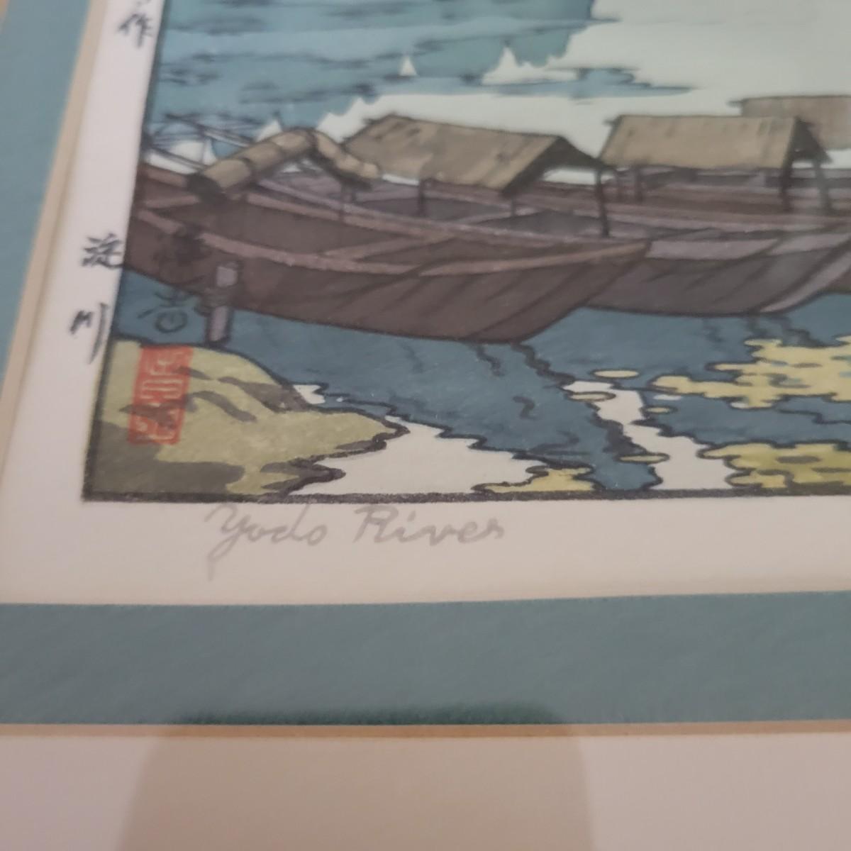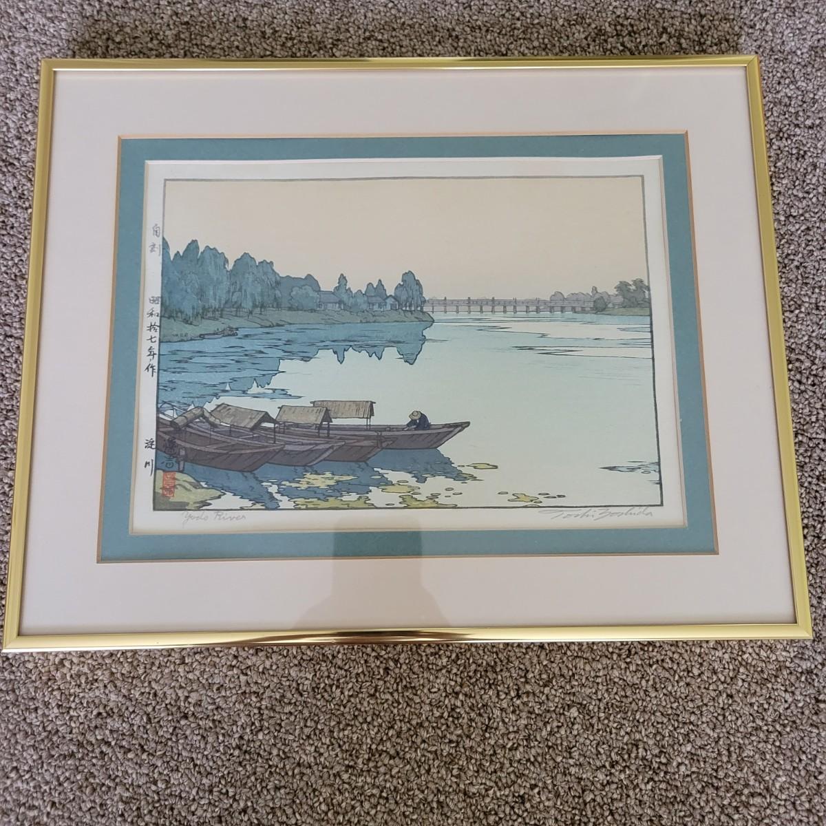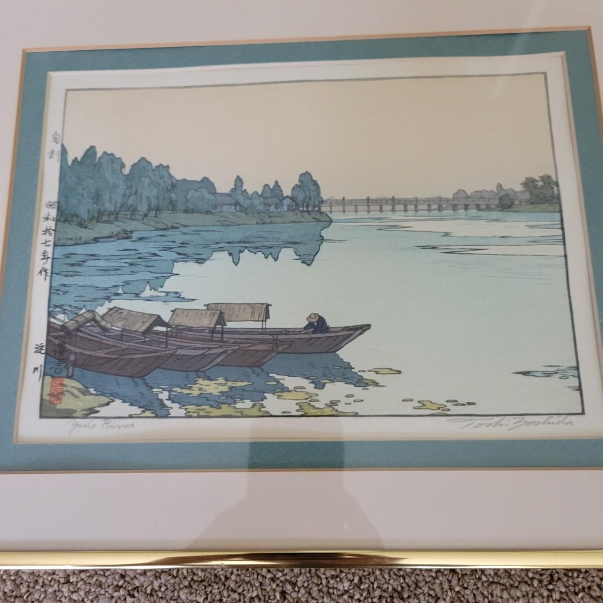 A framed original titled 'Yodo River' and signed but unable to deceifer signature. The medium appears to be a mix of pen and watercolors, but cannot be confirmed. This piece is double matted with a gold aluminum frame and measures approximately 14.5" x 1" x 11.5". Shipping available. Shipping can be costly. We suggest contacting our preferred local shipping provider, Postage Express, with dimensions and getting an estimate before bidding: (828) 670-5501 or postageexpress@yahoo.com.