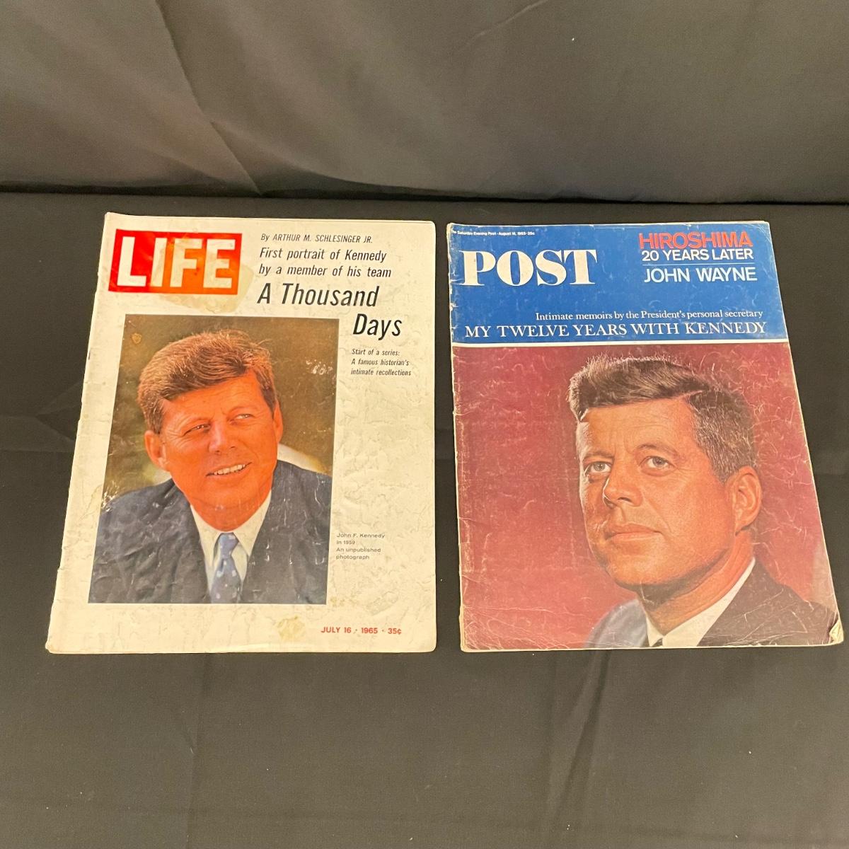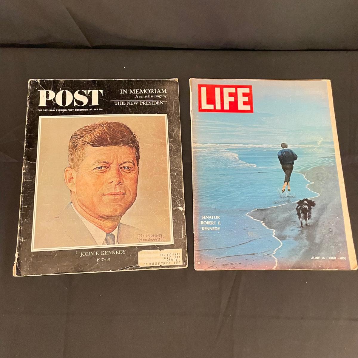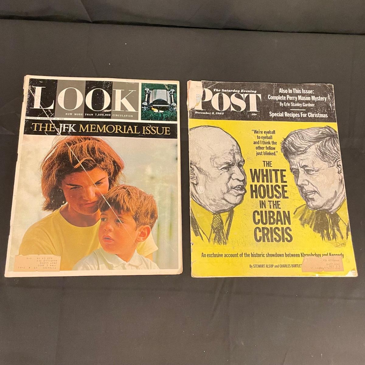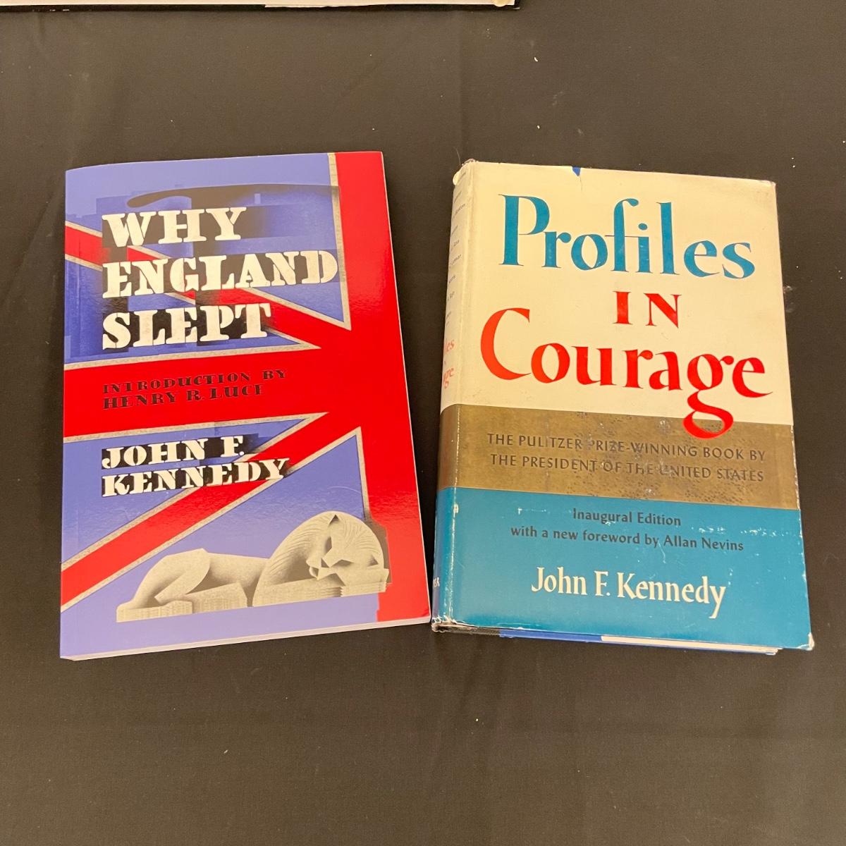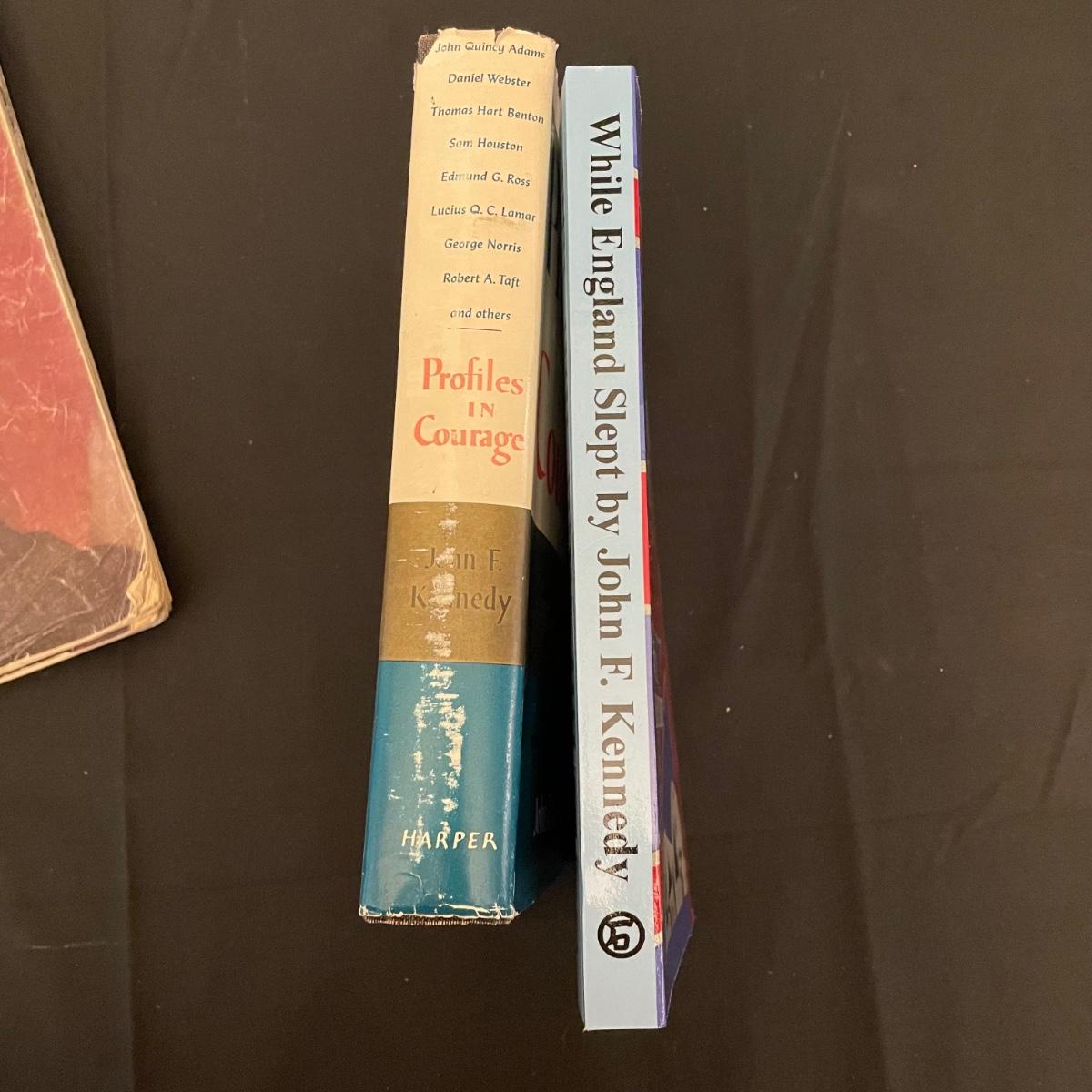 John F Kennedy memorabilia. Lot features his inaugural address professionally framed with matting behind glass. Frame appears to be black painted wood and measures 20” x 26”. Lot also contains two books by JFK; Profiles in Courage is hardcover, Why England Slept is paperback. Lastly, six 13” x 10.5” magazines. Four are JFK memorials, one features the Cuban Crisis and the final magazine features RFK on the cover. Shipping available. Shipping can be costly. We suggest contacting our preferred local shipping provider, Postage Express, with dimensions and getting an estimate before bidding: (828) 255-9250 or email shipping@postageexpressnc.com.
