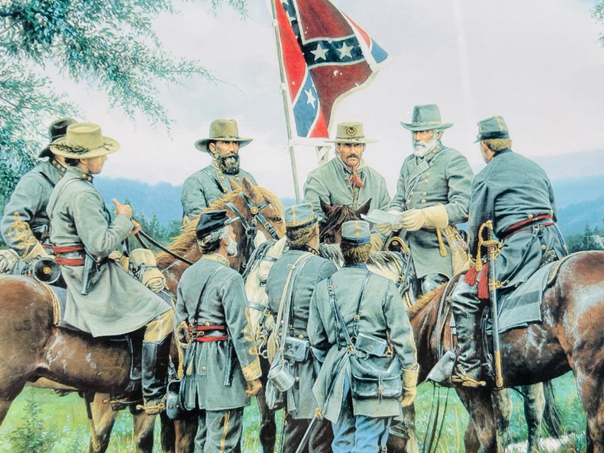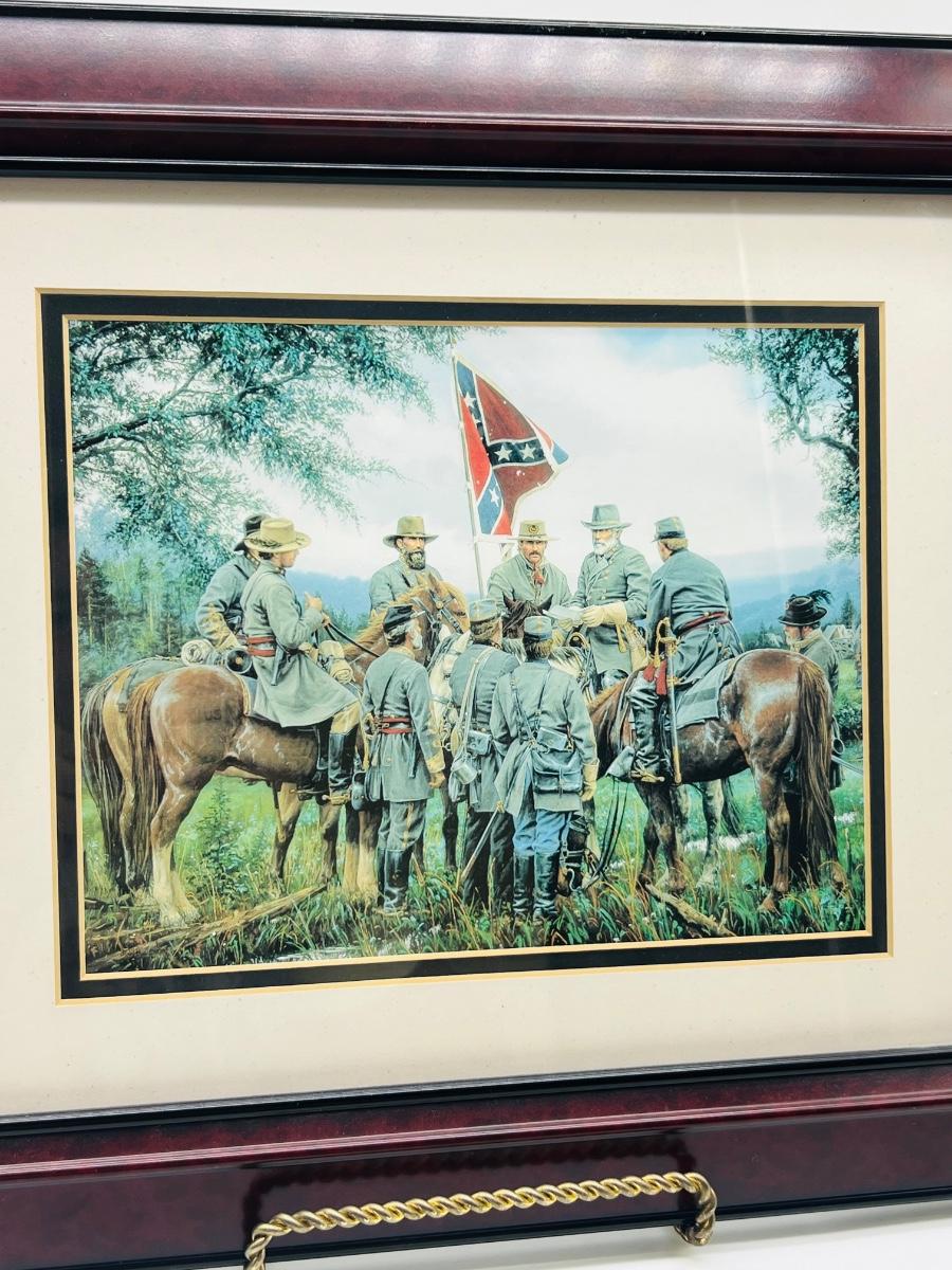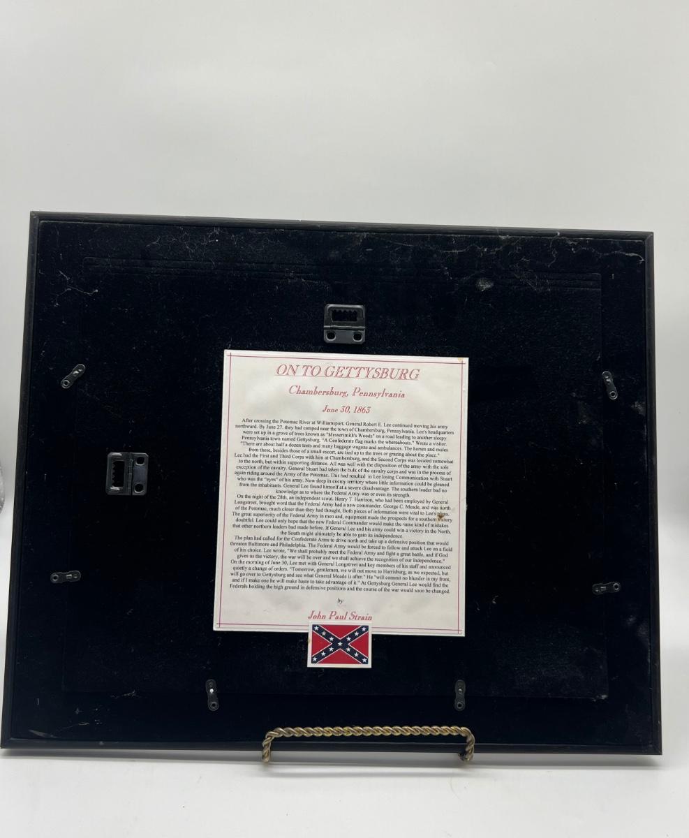 Framed John Paul Strain Lithograph "On To Gettysburg". Measures 12 1/2 half inches tall and 17 1/2 inches wide.