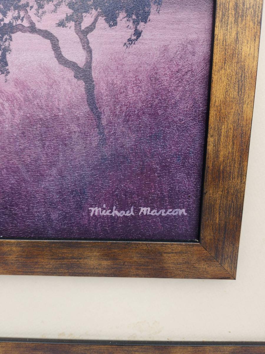 Framed Landscape Artwork by Michael Marson with Purple Tones