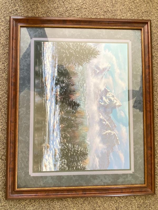 Framed Landscape Print Trees Mountains Snow 31.5 x 25 1/4