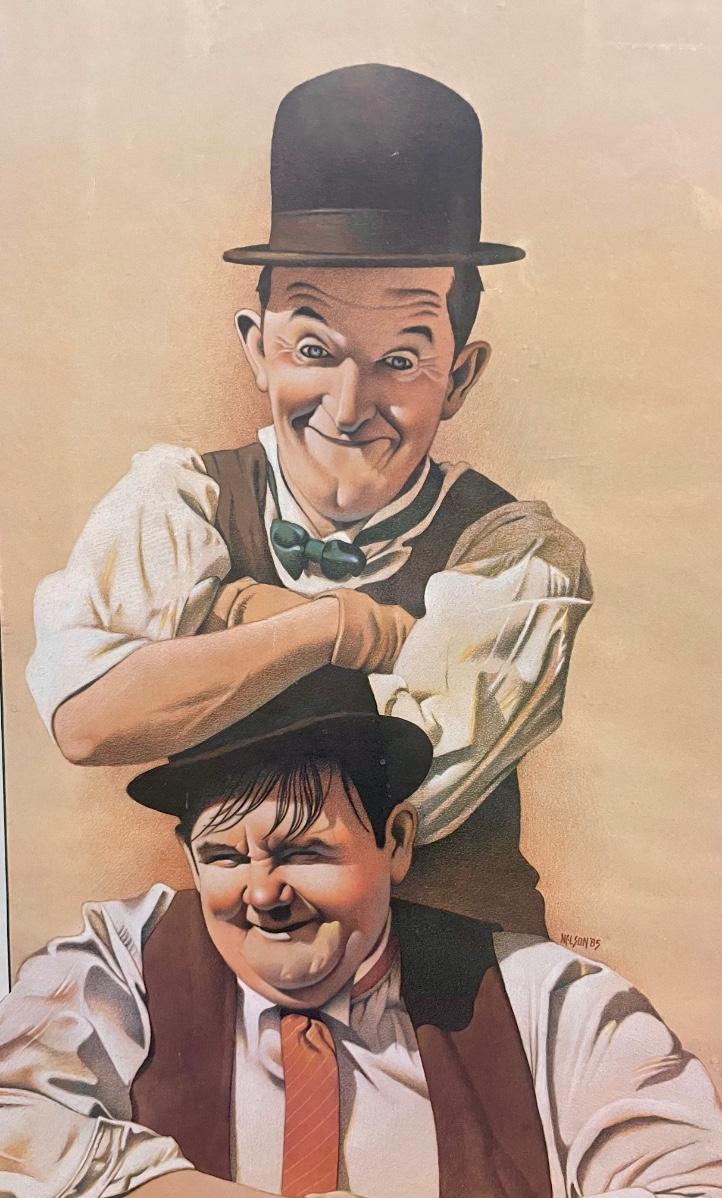Lithograph print of pastel chalk study of Stan Laurel and Oliver Hardy. Great condition, approx. 32” x 20”.