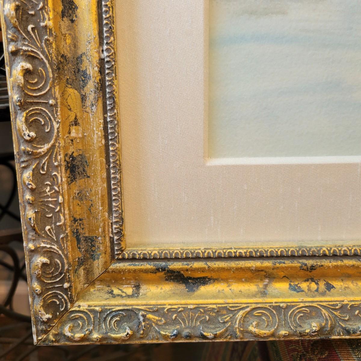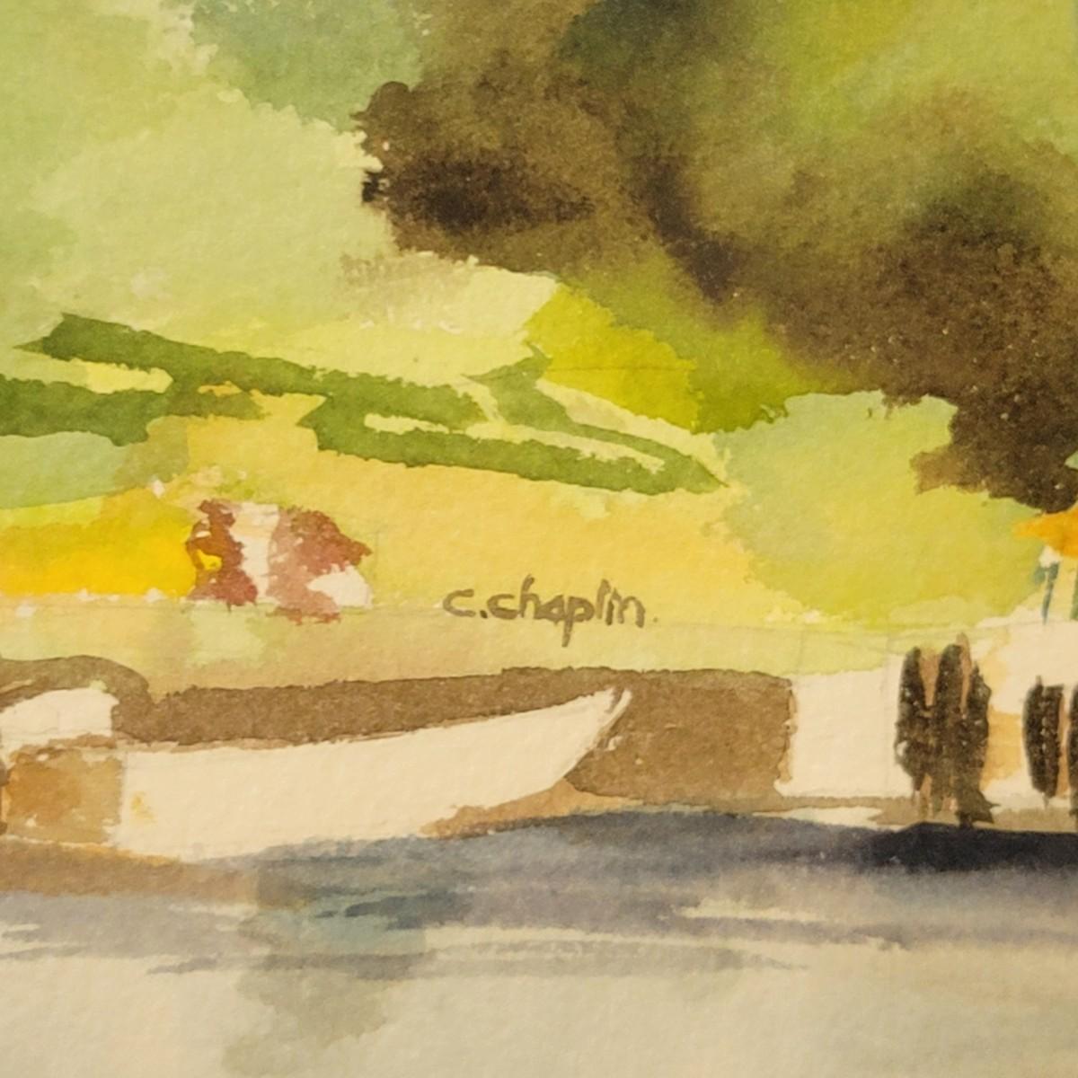 Framed Lighthouse Watercolor by C. Chaplin. Measures 28” X 21.5”H