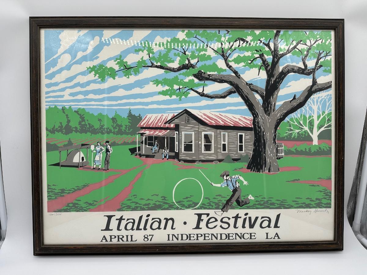 Framed Limited Edition “Italian Festival” Art Print – April 1987, Independence, LA - Signed & Numbered